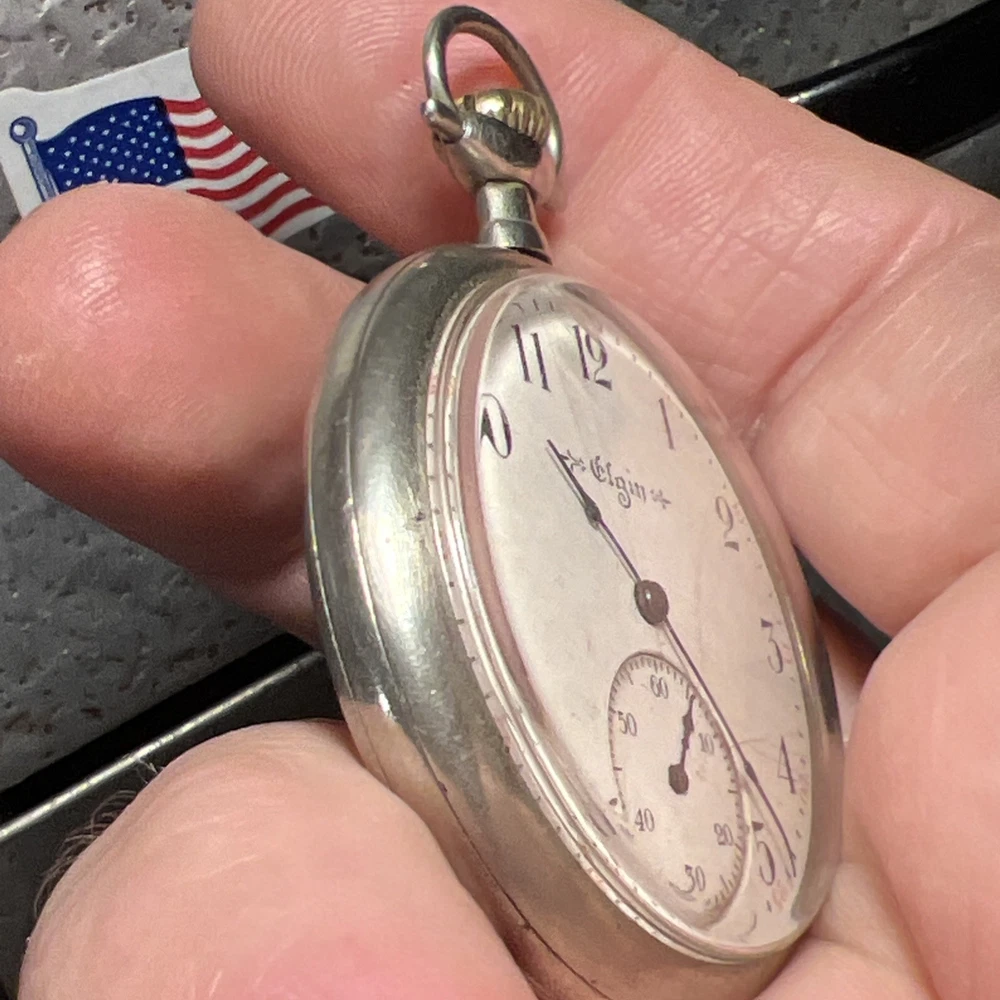 1. This vintage 1917 Elgin 12s pocket watch is a true piece of history! The golden-gilded 7-jewel movement still winds up smoothly, and the second hand runs beautifully—such a cool find for collectors. While the hour and minute hands need adjustment (they move when setting time but don't advance on their own), it’s a fantastic project watch or for parts. The 44mm open-face case has great character, and the Elgin heritage shines through. Perfect for someone who loves restoring timeless pieces!
