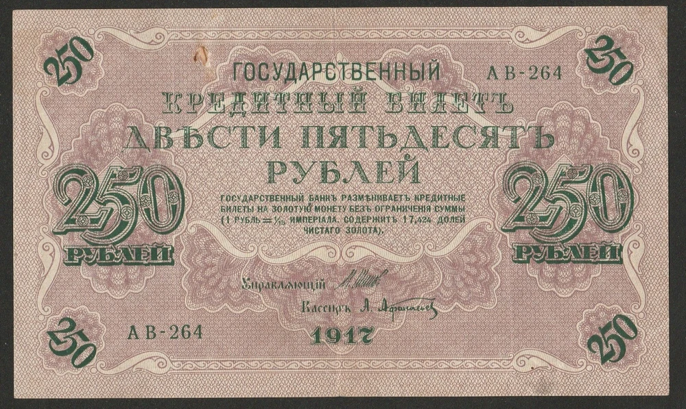 KM#36 - 1917 RUSSIA 250 RUBLE NOTE IN VF GRADE