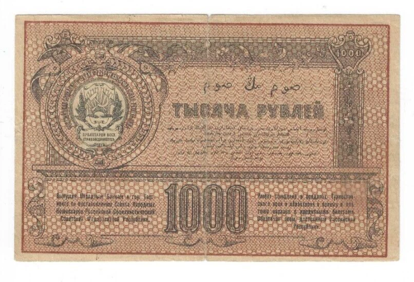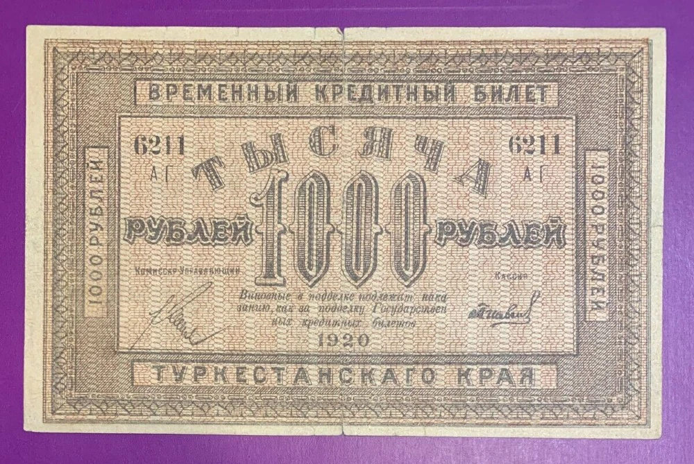 1920 1000 rubles Civil war Russia Turkestan District lot # 38