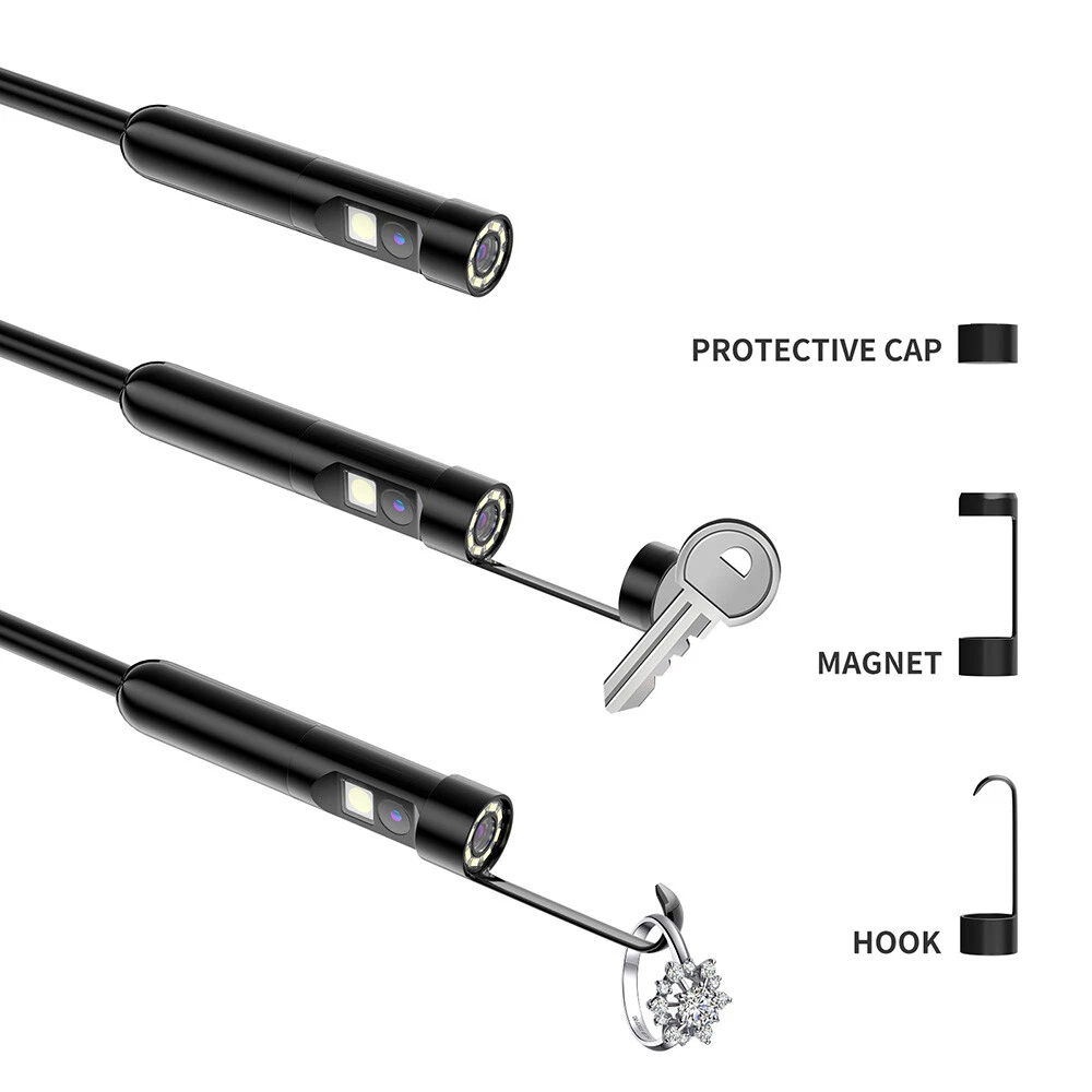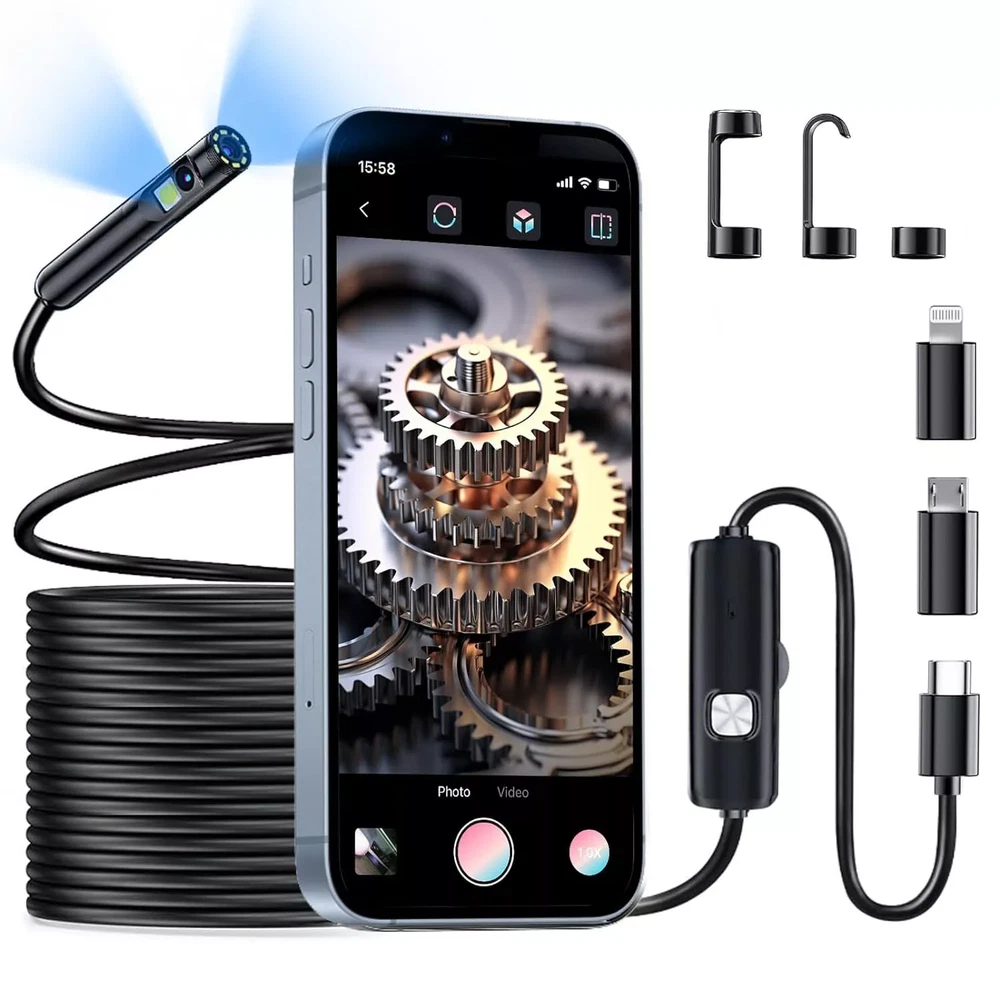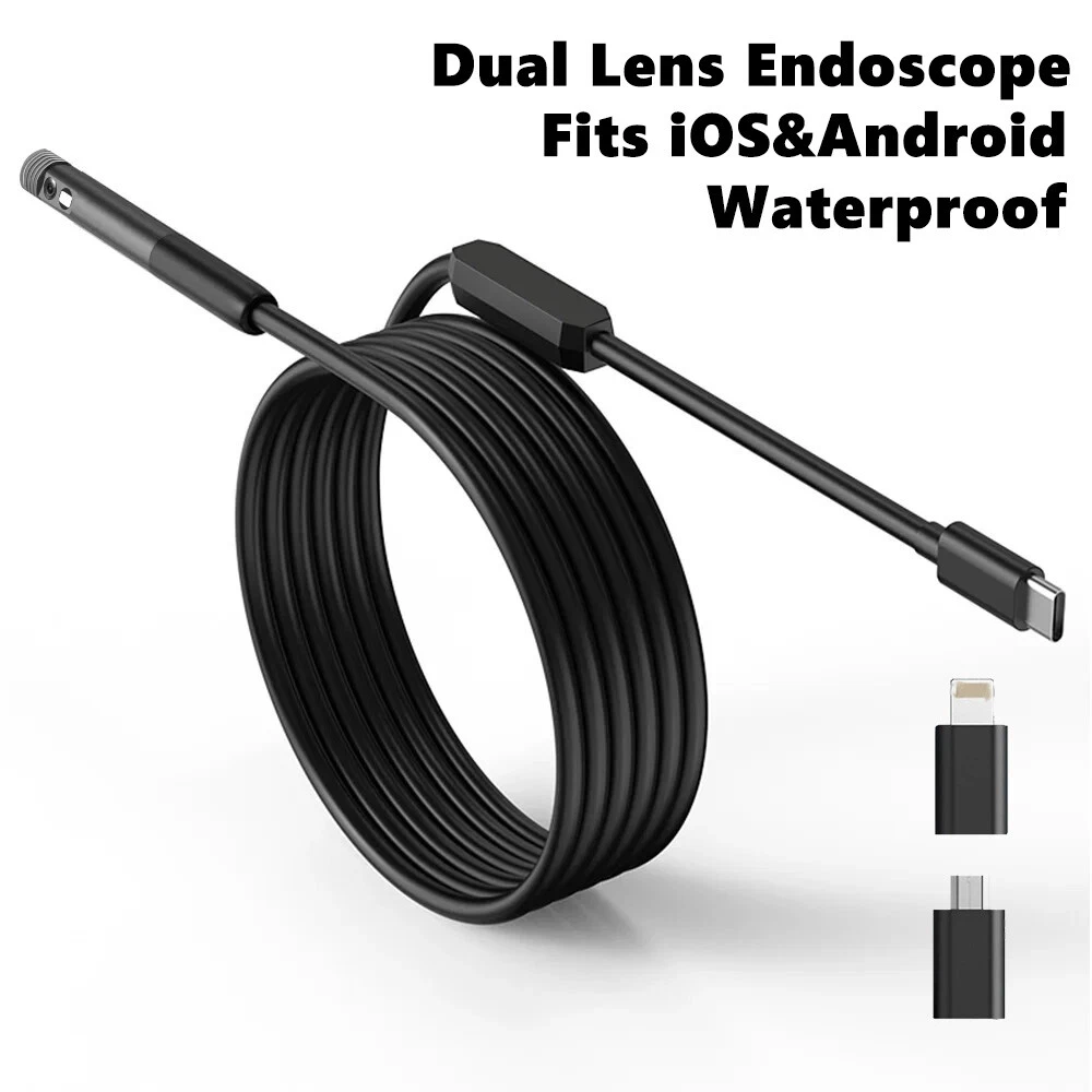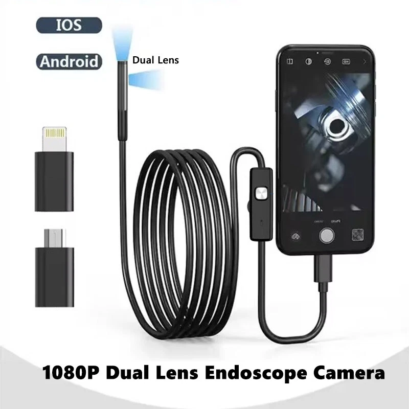 1920P HD Dual Lens Endoscope Inspection Camera LED Semi-Rigid For iPhone Android This item is the newest 3in1 dual lens endoscope camera with light, which can directly work with all iPhones or iPads or other OTG capable android phones. You just need to install the APP and simply plug the endoscope camera to your mobile devices, then you can view real-time images on the screen. It can be used for underwater camera, waterproof Micro-cameras, inside the car or around the engine, motor vehicle inspection, sewer pipeline inspection, search and rescue, criminal and custom detector, archaeological detect, the PCB detection, aviation and space industries, care and tractors industries, petroleum drilling industries, constructions and so on. Features : - 3M Pixel High Resolution CMOS Camera, HD 1920*1440P; Frame Rate: 30FPS - Switchable dual-lens inspection camera, long press to switch lenses for better viewing. - Semi Rigid endoscope camera cable which can bend and hold its shape. - Directly plug and play, easy to connect and use; - 8+1 Led Lights, brightness adjustable, which enable you to obtain picture information even in dark environment; - IP68 Waterproof Design (for camera lens only); - Support photo taking and video recording on mobile phone; - Camera Head OD: 7.9mm - Viewing Angle: 70 degree - Effective Focal Distance: 4cm-10cm (The best viewing distance) - Support System: iOS / Android - Support Pictures Format: JPEG - Support Video Format: MP4 - Working Temperature: 32 to 113 degrees Fahrenheit (0 to 45 degrees Celsius) Compatible Models : For iPhone 16/Plus/Pro/Pro Max For iPhone 15/Plus/Pro/Pro Max For iPhone 14/Plus/Pro/Pro Max For iPhone 13/Mini/Pro/Pro Max For iPhone 12/Mini/Pro/Pro Max For iPhone 11/Pro/Pro Max For iPhone X/Xs/Xr/Max For iPhone 8 /8 Plus For iPhone 7 /7 Plus For iPhone 6/6 Plus/6S/6S Plus For iphone 5/5 Plus/5S/5S Plus For all iPad Series For Samsung Galaxy S24/S24+/S24 Ultra 5G For Samsung Galaxy S23/S23+/S23 Ultra 5G For Samsung Galaxy S22/S22+/S22 Ultra 5G For Samsung Galaxy S21/S21+/S21 Ultra 5G For Samsung Galaxy S10/S11/S20/S20+/S20 FE 5G For Samsung Galaxy Note 8/9/10/20 Ultra 5G For Samsung Galaxy Z Fold Flip 5/4/3/2 For other OTG capable android phones. Package Includes : 1X Dual Lens Endoscope Camera Cable 1X Small Hook 1X Magnet 1X Protective Cap 1X User Manual