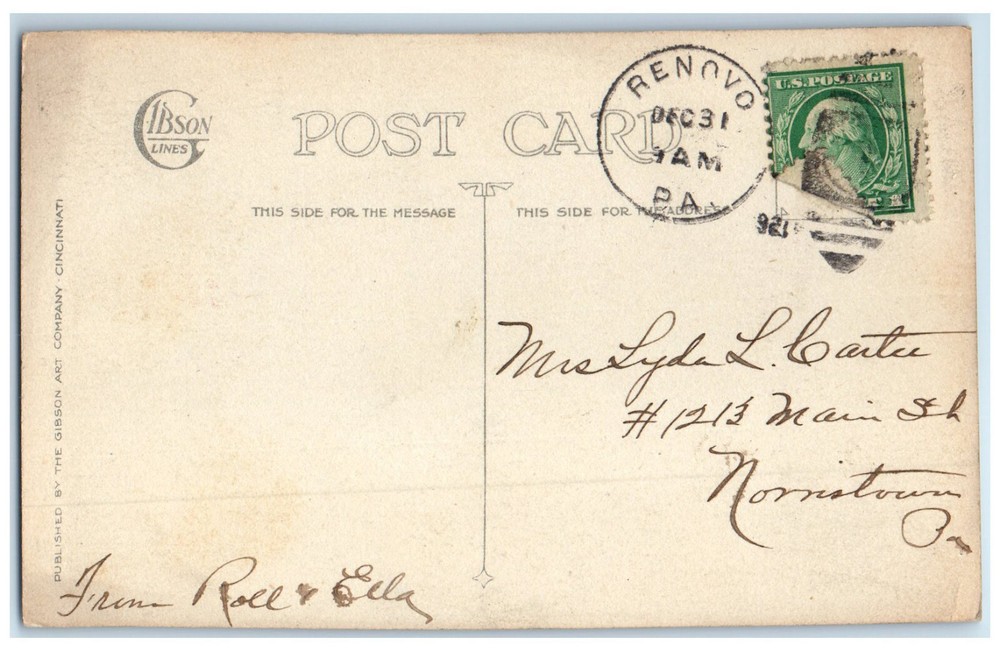 $ 9.26c1920's Purple Flower Leaves Lewiston Pennsylvania PA Antique Posted Postcard