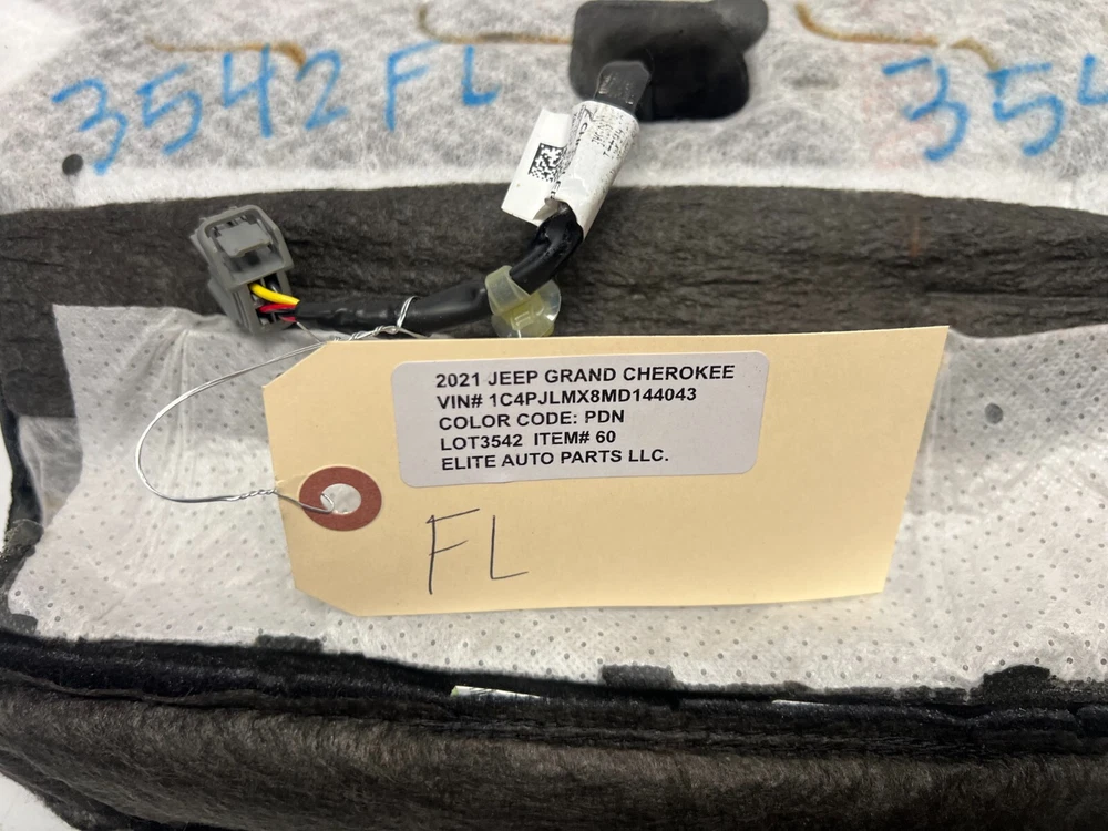 ELITE AUTO PART 2019-2021 JEEP CHEROKEE FRONT LEFT DRIVER SIDE LOWER SEAT CUSHION BLACK, GOOD USED CONDITION . LOT3542 # 60 part #OEM Look through pictures caref ully and make sure this is exactly the part you are looking for. What you see is what you will receive. DONOR CAR:--------- 2021 JEEP CHEROKEE VIN#----------------------------- 1C4PJLMX8MD144043 ENGINE:------------------------- 3.2L COLOR:-------------------------- GRAY PDN TRANSMISSION:------------ AUTOMATIC FWD MILES:------------------ 27K MILES
