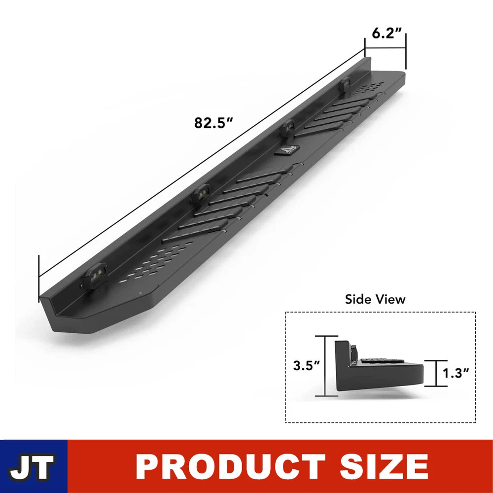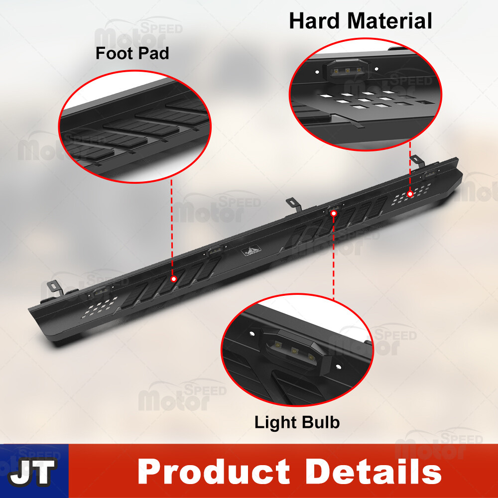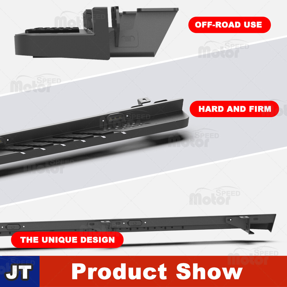 Head Lights Tail Lights Fog Lights Turn Signal Bumper Fender Flare Inner Fender Hubcaps Refrigerator Other Items for sale Head Lights Tail Lights Fog Lights Turn Signal Bumper Fender Flare Inner Fender Liners Portable Refrigerator May you Like Front & Rear Bumper Steel for 07-18 Jeep Wrangler JK w/LED Lights D-ring Shackle 292.99 USD Rear Bumper For 2007-2018 Jeep Wrangler JK Heavy Steel w/LED Brake Lights Black 259.99 USD For Jeep Wrangler 2007-2018 JK 18-25 JL JLU Rear Bumper Textured Steel w/Shackle 244.99 USD For 19-23 Jeep Gladiator JT 4DR Side Step Nerf Bars w/LED Lights Alloy Steel 2PC Other Model Recommendation: For 2007-2018 Jeep Wrangler JK: https://www.ebay.com/itm/403801887548 For 2018-2023 Jeep Wrangler JL: https://www.ebay.com/itm/403882239424 (Pls Note:The Same as this link, all with LED lights,only the compatible model year is different) Features: Full New - 100% Brand New in the box with manufacturer packaging, never been opened or installed before. With LED Position Lights - There are 4 built-in LED lights on the left and right sides, making it safer at night and more unique Heavy duty build - Cold rolled steel with a black powder coat for corrosion protection and durability. Perfect for off-road use - These Rock Sliders provide excellent protection for the side and undercarriage of your Jeep while rock crawling. The durable non-slip step pads ensure an easy entrance and exit from your Gladiator JT. Sturdy construction - can meet different wild off-road driving challenge Easy installation - Direct bolt-on, no drilling required! Roughly 30 min installing time. Fitment: For 2019 2020 2021 2022 2023 2024 Jeep Gladiator JT 4 Door Only (non-Sport) Package Include: 2 PCS Side Steps / Running Boards ( Left +Right Side) Payment Shipping Return About us Contact us Payment Appreciated for the prompt payment, Contact us if bid by mistake, system open unpaid item automatically. Payment must be complete within 3 days from the date you purchase or after the end of auction. Items unpaid within 3 days of the auction end will be forfeited. We reserve the right of cancel the order and re-selling the items. Shipping All shipment will ship by UPS or USPS . All items will be ship within 1 working days , and we will ship out all orders as soon as possible after payment verified, please allow up to 1-4 business days for delivery. CANADA & International customers please note: your government might charge a duty tax (brokerage fees). We do not responsible for any custom duty or import tax. Why Choose the US Stock? 1. Us Local Shipping, No Extra Customs Cost to the US. 2. Fast Delivery: 1-4 Working days Delivery. 3. Best After-Sales Service!!! Return The buyer is responsible for all return shipping including a result of customer error or defective item. 1) If you received an incorrect, damaged, defective, or item not as described, contact us for full refund or replacement on our cost. 2) If you want to return the item, please contact us within 60 days after package received. Return products must also be in its original condition: including box, packaging and all other accessories. About us We are the best auto parts, we have been pursuing excellence, continuous exploration as the slogan, let customer satisfaction is our purpose! We adhere to the United States local delivery, one year warranty! Welcome! Contact us How Should You Contact us? Please Read The Item Description And See if The item Fits Your Vehicle Exactly. If You Found Any questions, Feel Free to email us by "Ask a question" Our Office Hours Are Monday - Friday 8:00am - 5:00pm PST / 11:00am - 8:000pm ET, We Do Not Answer Any E-Mails On Weekend, And We Will Reply All E-Mails In The Order It Was Receive. All E-Mail Take Us Around 24 Hours To Respond To Any E-Mail. We Are Close During The Weekends And We Do Not Answer Any E-Mails During That Time.