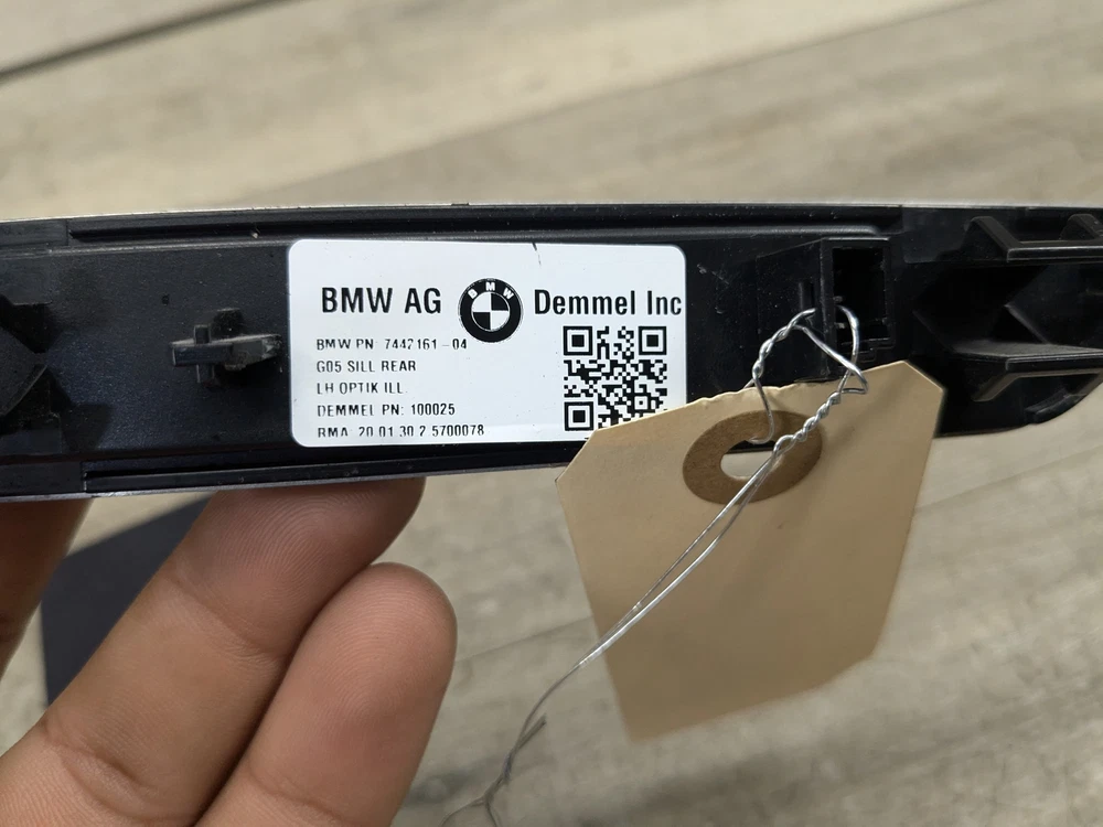 19-23 OEM BMW G05 X5 Rear Left Driver Side Door Sill Cover Trim Sill Kick Plate SKU: 31486 Brand: BMW Condition: Used Notes: BELEUCHTET MPN: 7442161 Manufacturer Part Number: 51477442161 OE/OEM Part Number: 7442161 Interchange Part Number: 7442161 We're on Instagram! Follow us! oe_mgarage All parts are used unless otherwise noted! Please understand that being that parts are used there may be some wear and tear & scratches etc. We cannot guarantee the condition of paint & or that paint color will be an exact match as yours. We try to show as much of the condition as possible through photos and notes! Original Car: 2020 BMW X5 Series: G05 Vin Number: 5UXCR4C06L9C49782 Engine: B58C Transmission: Automatic Part number: 7442161, 51477442161 Notes: BELEUCHTET SKU: 31486 Location: T9 IF ITEM IS MARKED AS FREIGHT SHIPPING AND YOU ARE SHIPPING TO A RESIDENTIAL ADDRESS OR A BUSINESS WITHOUT A FORKLIFT/LOADING DOCK Our shipping carriers charge extra fees for these deliveries! Please inquire BEFORE purchasing We will invoice you for it post purchase Thank you 90 day warranty on Engines purchased through eBay! 30 day warranty otherwise Engine is guaranteed to turn & the cylinder block is not cracked & and the cylinder head is not cracked Engine warranty details: Any maintenance items such as gaskets & fluids & seals & filters & spark plugs & belts & aluminum bolts (the ones holding valve cover & oil pan & etc.) are not warrantied and must be replaced Failure to replace valve cover gasket & oil pan gasket & new bolts for said gaskets voids the warranty Any aftermarket or performance parts or software present on the car voids the warranty Engine components such as timing chain & vanos gears & vacuum pump & chain guides are not warrantied. Other engine components external to the cylinder block and cylinder head are not warrantied. Any parts left on the engine are not warrantied and are for installation convenience only & buyer assumes all risk and responsibility reusing them. Overheating engine voids all warranties & Low oil or oil starvation voids all warranties for engine All work must be performed by a licensed & ASE certified mechanic shop or BMW dealership & failure will result in voiding all warranties Warranty covers the cost of the item! It does not cover shipping or labor! Used condition items may have minor imperfections. Please look at pictures for details! And understand that this is a USED part after all! Compatibility is the responsibility of the customer to ensure!! Please feel free to reach out with any questions!! Follow us on Instagram! @oe_mgarage