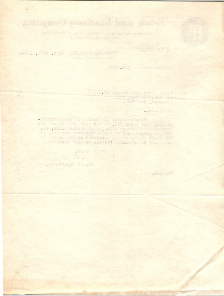 This original typed letter dated September 30th, 1924, is from the Frick and Lindsay Company, a supplier for manufacturers, mines, contractors, and oil and gas wells based in Pittsburgh, Pennsylvania. Addressed to the Mount Airie Coal Mining Company in Syracuse, New York, the letter discusses shipping and prepaid freight charges related to an order, providing a glimpse into early 20th-century industrial business communications. The letterhead features the company's logo and highlights its Pittsburgh branch affiliation with John A. Roebling's Sons Co., known for wire and wire rope, adding historical context to the industrial supply chain of the 1920s. This piece of ephemera measures approximately 8.5 x 11 inches and exhibits typical aging signs such as folds, slight discoloration, and minor edge wear, enhancing its authenticity and collectible appeal. Ideal for collectors of industrial, mining, or Pennsylvania historical documents, this letter reflects the operational and logistical aspects of the coal mining industry during the interwar period. Its provenance and clear date make it a valuable addition to any ephemera or business history collection.