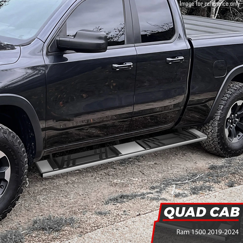 Welcome to Speed Daddy Store Home About Us Feedback Add To Favorites New Arrivals Ending Soon Contact Us For 19-24 Ram 1500 Quad Cab 6.5" Premium Running Boards Side Step Pedal Nerf Bar Product Description Running boards give your ride a massive boost when it comes to look and utility. Combining the stylish appearance and rugged looks, these inventive running boards are the ideal way to upgrade your truck or SUV. Constructed from high quality grade aluminum frames, you can be sure this running board will withstand the roughest of weather conditions as well as the test of time. They are built tough and are highly corrosion resistant. Getting in and out of your vehicle is easy with the large non-skid molded pads that ensure secure footing. No drill installation! These running boards are very easy to install with the brackets fitting right into the existing factory holes. By not having to not drill in to your vehicle, your time and effort is saved by you. Specifics and Features : Built From Durable, Rust-Resistant, Stainless Steel ABS Plastic Covered Slip-Resistant Step Pads ABS Plastic End Caps Polished Finish 350Lb Weight Capacity Easy, No-Drill Installation Bolts Right To Factory Mounting Points In Less Than An Hour (Most Models) Vehicle Specific Mounting Brackets Included Includes : 2 X Stainless Steel Running Boards Mounting Brackets Hardware as Shown in the Picture Above Notes : Compatible with: 2019-2024 Ram 1500 Extended Cab 100% Brand New Professional Installation is Highly Recommended Installation Instruction is NOT Included Shipping Payment Returns Terms & Conditions Feedback Contact Us DOMESTIC LOWER 48 US STATES: FREE SALES TAX: CA ONLY VERY IMPORTANT: Double check shipping address. We are not responsible for incorrect or undeliverable addresses. Please use Shipping & Payments tab on top of page for shipping details for your location. Shipping to PR, HI, AK and PO Box addresses will be charged the same as shipping to Canada. GU, VI, SAIPAN will be charged the same as international shipping rate. For Canada shipping please select the lowest price. We do not offer expedited shipping. US Territories such as GU, VI, SAIPAN will be charged the same as CANADA shipping rate. Transaction will be held until a full shipping amount received. Some of the packages cannot be delivered to a PO Box. Customer is responsible to ensure PO Box address given is deliverable by the shipping company. Package will be held until a valid physical address is provided. Customer assumes shipping charges incurred in shipping to undeliverable address. International buyers are responsible for all customs duties, taxes, and other applicable fees incurred by the country's customs/border regulations. Please contact customs for more information. We ship 98% of all orders the same or next business day after payment received/cleared. Please understand that once orders are shipped, we cannot control the transit times thereafter. Most orders will ship via USPS First Class/Priority Mail or FedEx/UPS or the best suitable carrier for the specific size of the product. We are not responsible for any changes to address after item has been shipped. Item will be shipped out within 24 hours after payment cleared, except for weekends and holidays. PayPal e-check takes 3-7 business days to be processed. We will not ship until an e-check has been cleared. 30 Days Free Returns, please notify us within 30 days after you've received your order. Please email us or call us to obtain a RMA (Return Merchandise Authorization) number from us, and have the RMA number written on the return package. Items to be returned must be in resalable condition. All returns are for refund ONLY. No exchange accepted. For emissions related items, please check with your local jurisdiction for emission specific requirements before purchasing. All items do not come with installation instruction unless otherwise specified. If item is questionable, please consult your local professional/mechanic before making purchase. Shipping DOMESTIC LOWER 48 US STATES: FREE SALES TAX: CA ONLY VERY IMPORTANT: Double check shipping address. We are not responsible for incorrect or undeliverable addresses. Please use Shipping & Payments tab on top of page for shipping details for your location. Shipping to PR, HI, AK and PO Box addresses will be charged the same as shipping to Canada. GU, VI, SAIPAN will be charged the same as international shipping rate. For Canada shipping please select the lowest price. We do not offer expedited shipping. US Territories such as GU, VI, SAIPAN will be charged the same as CANADA shipping rate. Transaction will be held until a full shipping amount received. Some of the packages cannot be delivered to a PO Box. Customer is responsible to ensure PO Box address given is deliverable by the shipping company. Package will be held until a valid physical address is provided. Customer assumes shipping charges incurred in shipping to undeliverable address. International buyers are responsible for all customs duties, taxes, and other applicable fees incurred by the country's customs/border regulations. Please contact customs for more information. We ship 98% of all orders the same or next business day after payment received/cleared. Please understand that once orders are shipped, we cannot control the transit times thereafter. Most orders will ship via USPS First Class/Priority Mail or FedEx/UPS or the best suitable carrier for the specific size of the product. We are not responsible for any changes to address after item has been shipped. Payment Item will be shipped out within 24 hours after payment cleared, except for weekends and holidays. PayPal e-check takes 3-7 business days to be processed. We will not ship until an e-check has been cleared. Returns 30 Days money back, please notify us within 30 days after you've received your purchased item. All return requests must be submitted through your eBay account. You have to obtain a RMA (Return Merchan