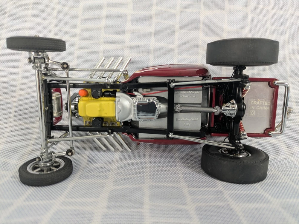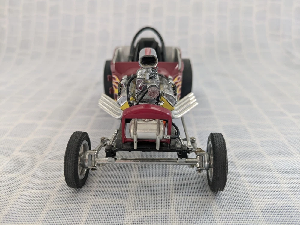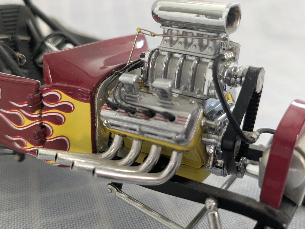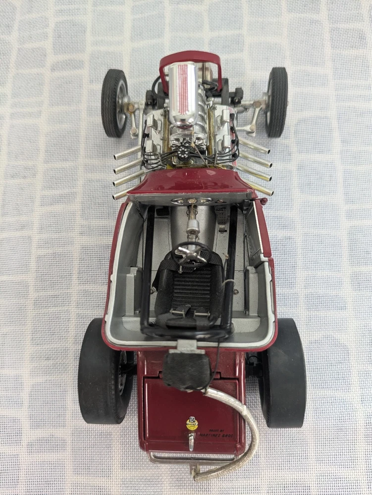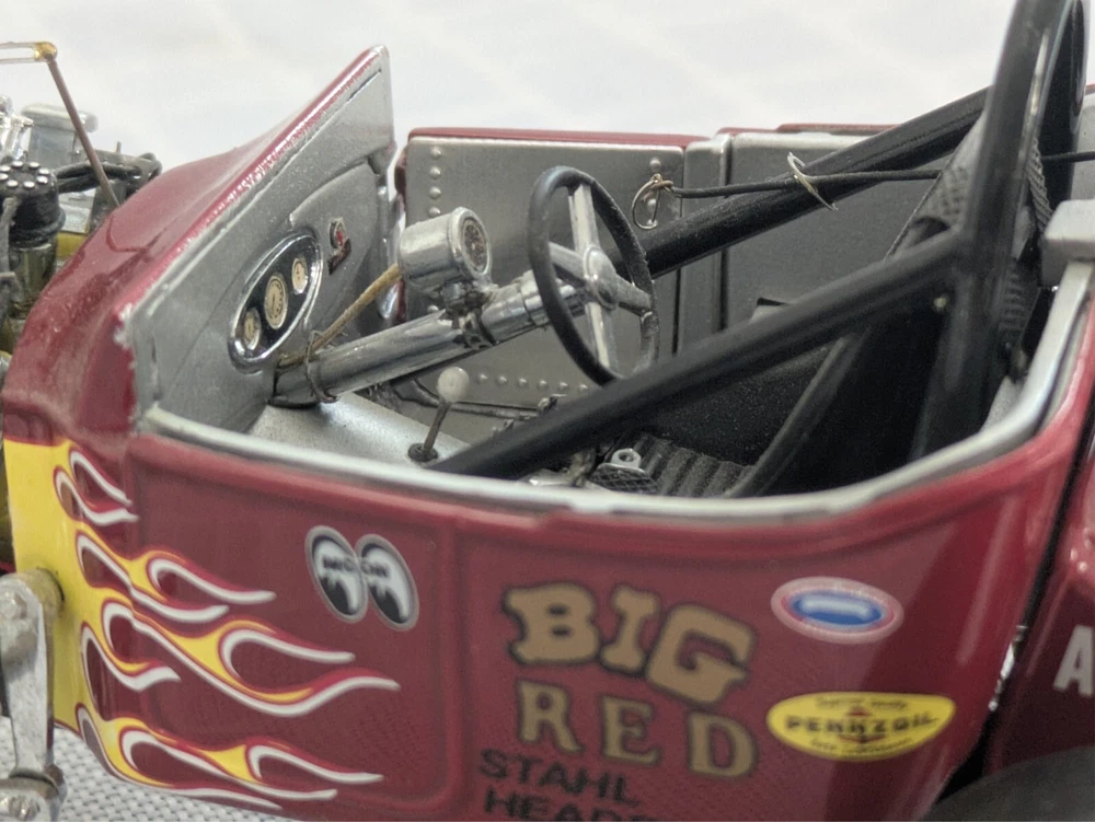 This is from my late father in law's die cast collection. It is a die cast model of a 1925 Ford Dragster, "Altered T." It has the name "Big Red" on the sides of the doors. It is a 1:24 scale model made with the detail and quality that the Danbury Mint is known for. This model has lived in the box since purchase in a smoke free home. Thanks for looking.