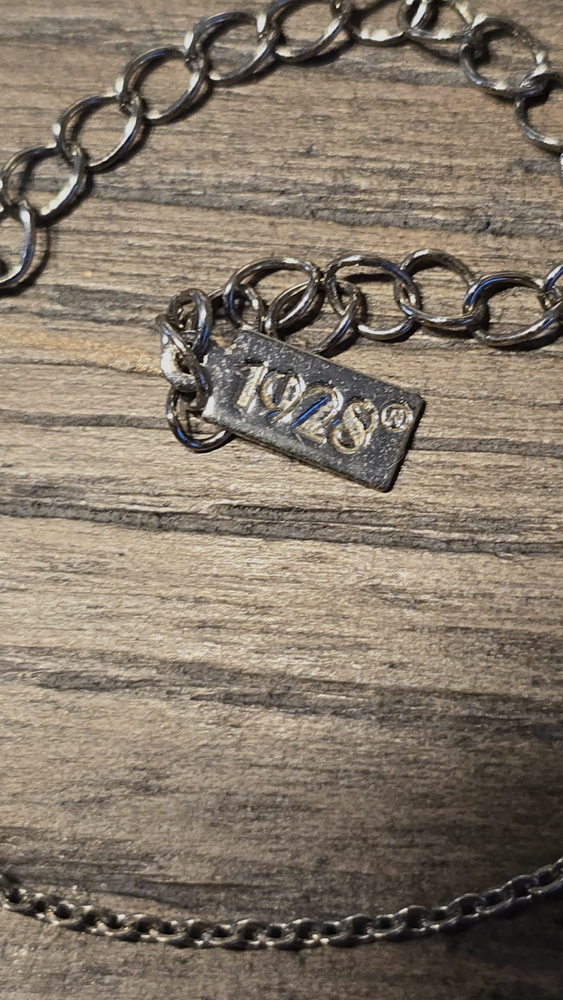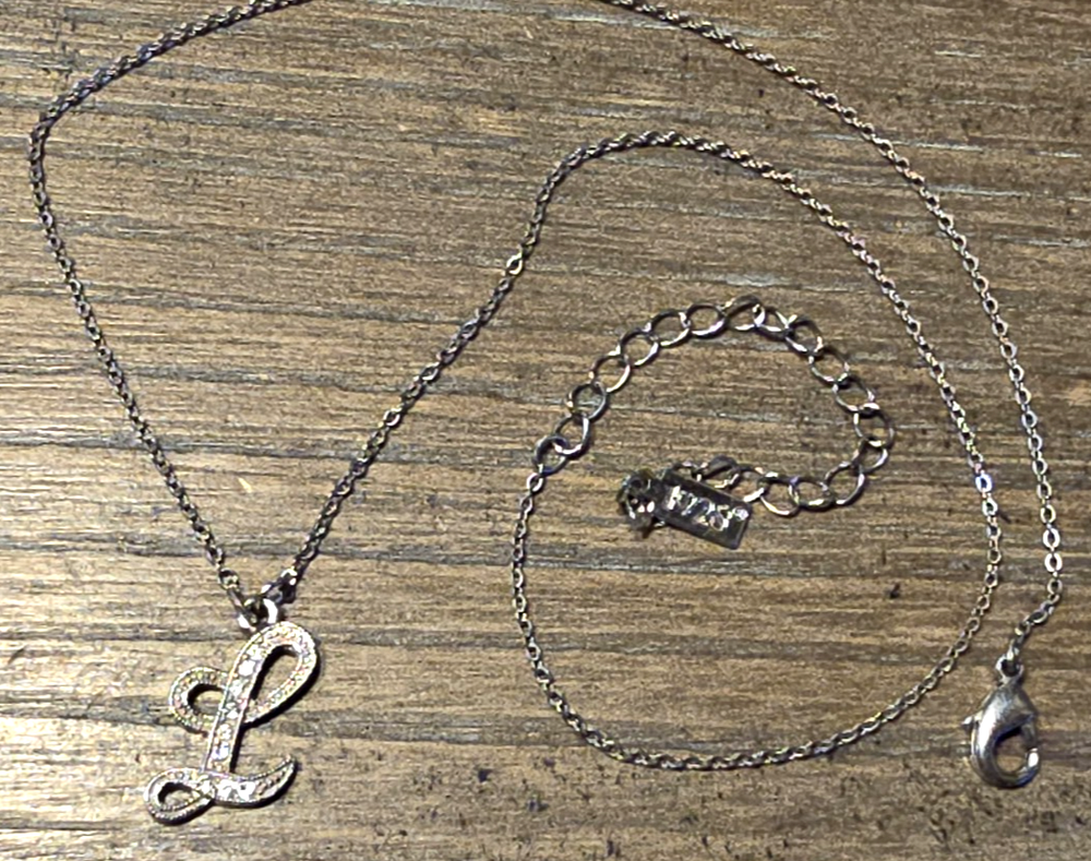 This is a silver tone necklace with letter "L" initial pendant by 1928. The pendant is 3/4 inch tall with rhinestones and high quality dotted edge detailing that give it a 3D look. Condition is very good, wear is very light. Thanks for looking! Please ask any questions BEFORE purchasing, and see my other listings for more!