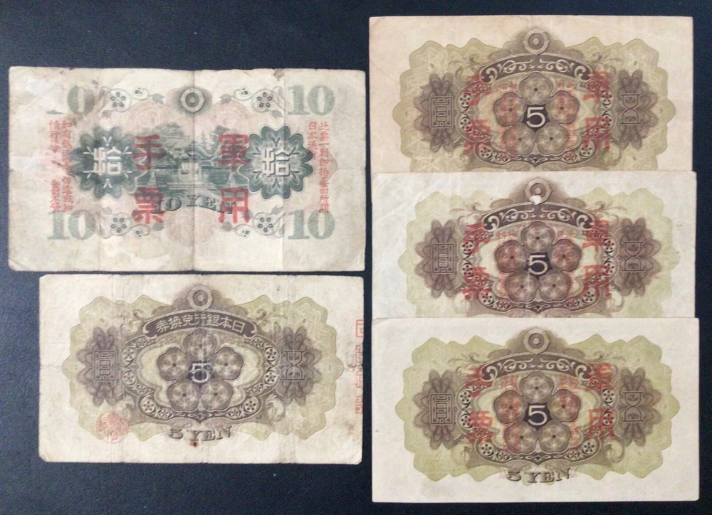 1930’s CHINA-JAPANESE PAPER MONEY - LOT OF 5 CIRCULATED BANKNOTES!