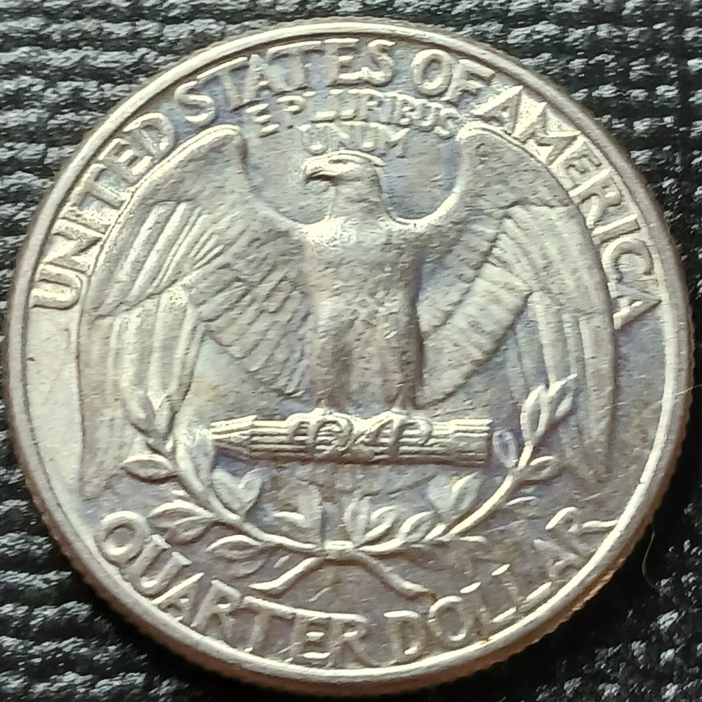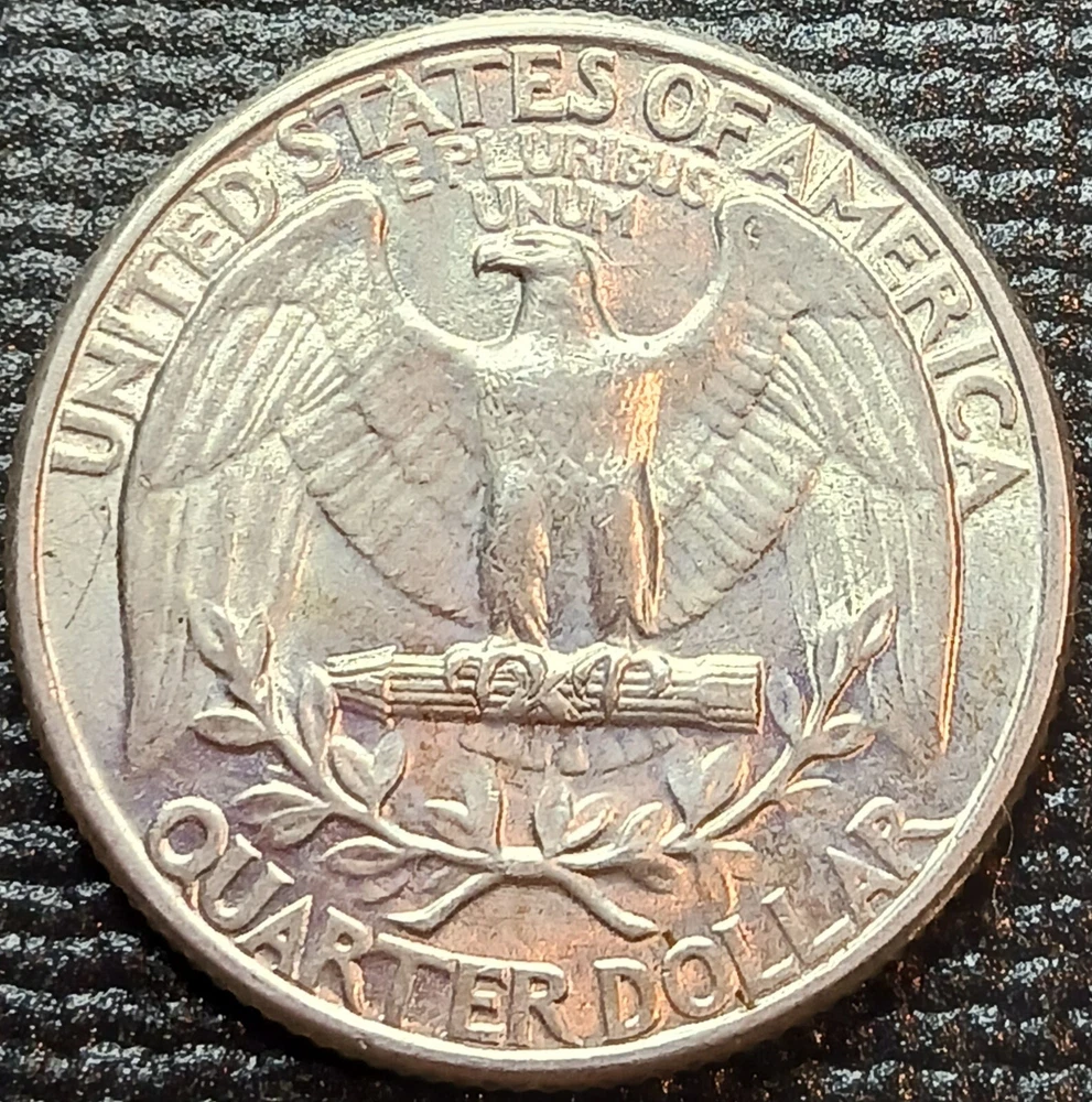 That is toning from being in a dansco for the past 5 years. Defenitely should try to get it in a dansco, if you want it to continue toning, I am going to store it in my personal dansco until it sells. This 1932 P Washington Quarter is a rare find for any coin collector. This quarter is uncirculated and made of 0.9 fineness silver. The coin features the first year of design and was struck in Philadelphia. The quarter is ungraded and uncertified, but its high grade speaks for itself. This coin is a great addition to any collection and is a must-have for fans of US coins. Don't miss out on the chance to own a piece of history with this 1932 P Washington Quarter.