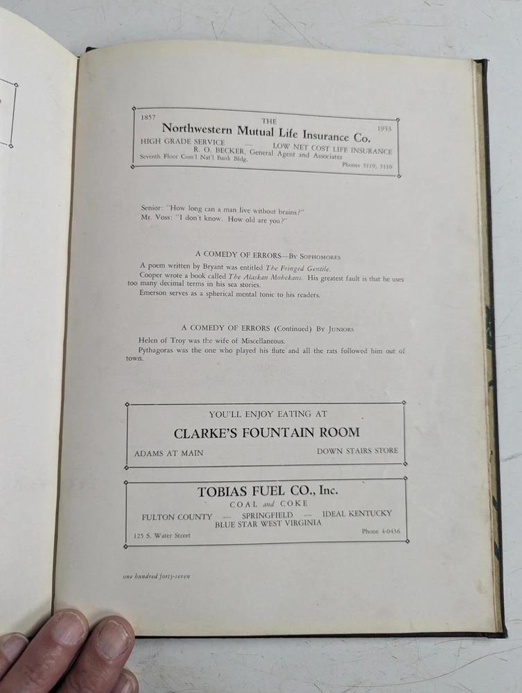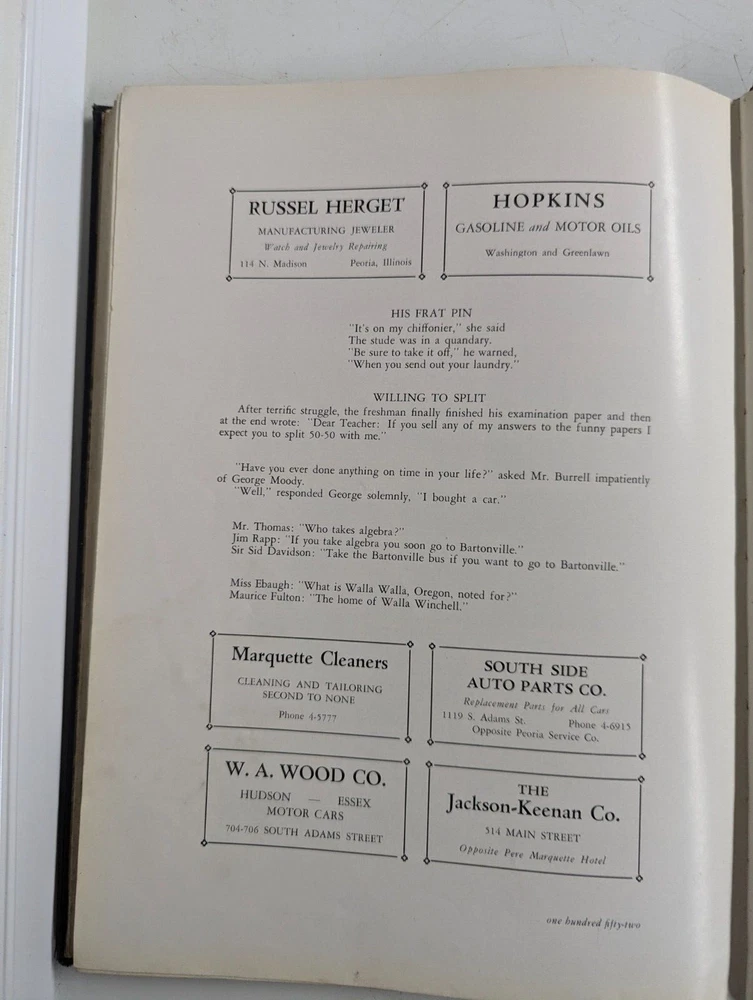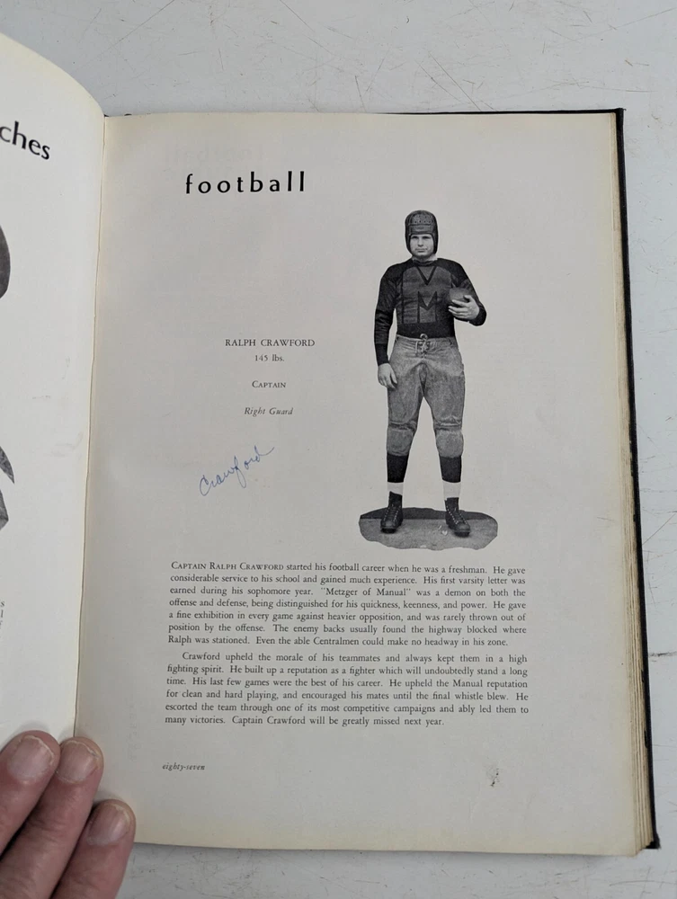 This 1933 Manual Training High School Yearbook is a rare find for collectors of historical memorabilia. The yearbook features a glimpse into the past of Peoria, Illinois, with detailed information about the school's history, teachers, and students. It also includes a signed copy of the yearbook, making it a unique addition to any collection. The yearbook is categorized under Elementary & High Schools, Teaching & Education, and Collectibles, and is perfect for those interested in the history of Peoria's schools. The yearbook is a valuable piece of history, and a must-have for collectors and enthusiasts alike. WILL COMBINE SHIPPING