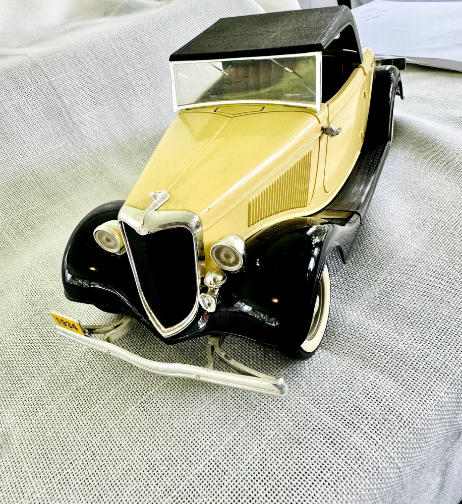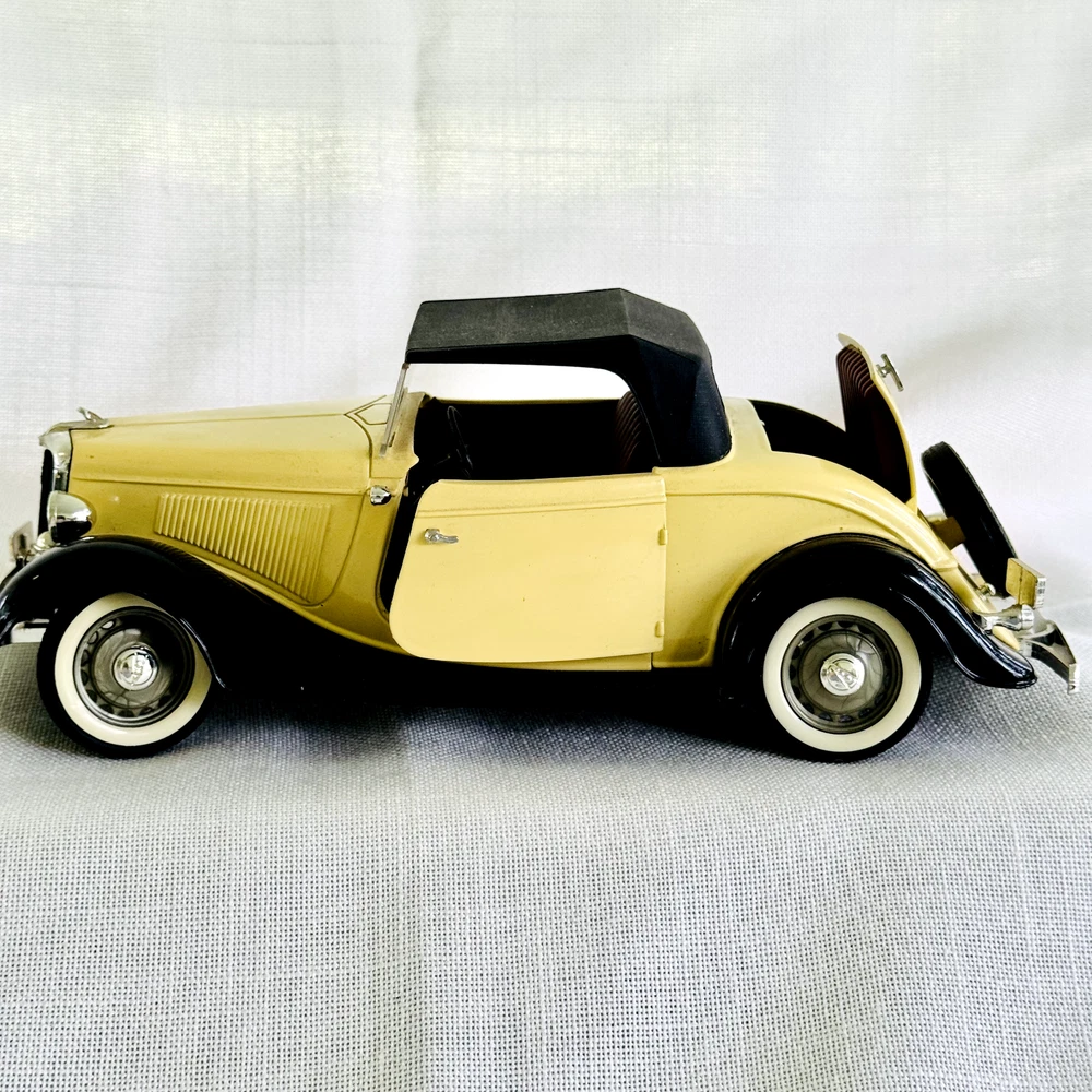 Don't miss out on the perfect Christmas for the collector. Step back in time with this stunning 1934 Ford V8 Roadster die-cast model by Solido, meticulously crafted at a 1:19 scale. This vintage beauty, dressed in a vibrant yellow finish, features an authentic rumble seat that showcases the distinctive flair of the classic era. With its superb attention to detail, from the iconic grille to the finely detailed interior, this collectible is a testament to the golden age of American automotive design. Perfect for enthusiasts and collectors alike, this model offers the perfect blend of nostalgia and craftsmanship. Make a bold statement in your collection with this exceptional piece of automotive history – a must-have for any true connoisseur, Please contact me with any questions before bidding. Thanks for looking.