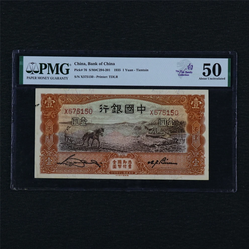 1935 CHINA Bank of China 1 Yuan Pick#76 PMG 50 About UNC