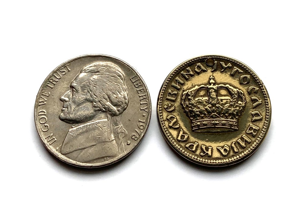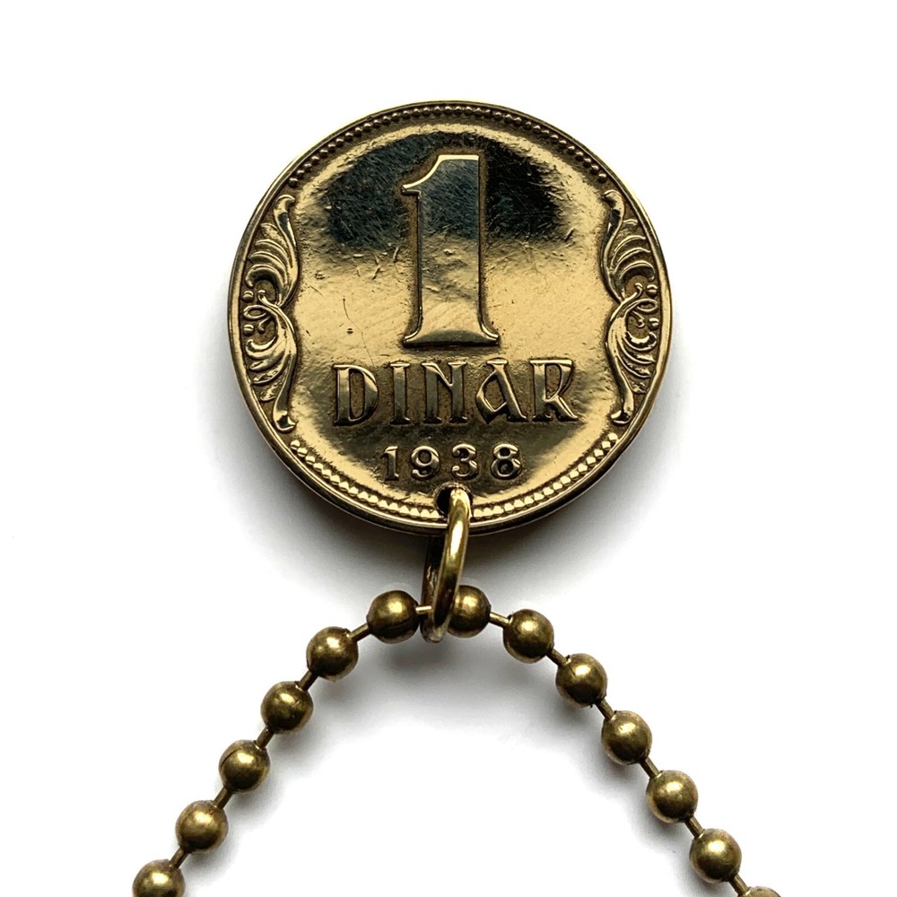 1938 Yugoslavia 1 Dinar {1-year issue} 17S King Petar II FEATURING front: large crown Lettering: КРАЉЕВИНА ЈУГОСЛАВИЈА (Kingdom of Yugoslavia) • quantity 1 • demonetized {no longer in circulation} polished Aluminium-Bronze coin • diameter: 21 mm • weight: 3.5 g • comes with a 24" stainless steel ball chain Yugoslavia Jugoslavija Југославија coin pendant necklace jewelry golden crown Belgrade Serbia Srbija Croatia Macedonia Slovenia Montenegro Bosnia & Herzegovina Kosovo Sarajevo Zagreb Skopje Ljubljana Jajce Vojvodina Podgorica Split Sušak South