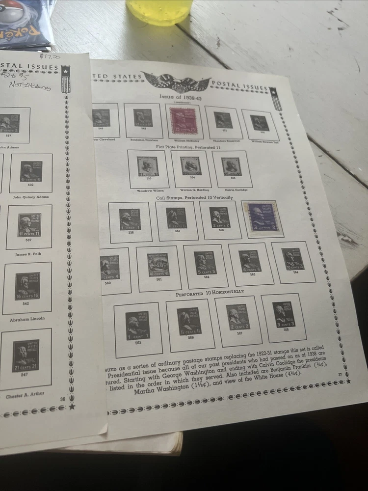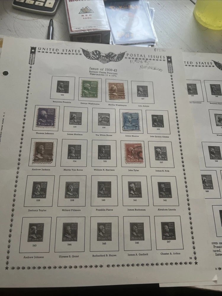 What we are offering is This 1938-39 US Presidential Series USED Stamp Collection Starter Set is a must-have for any stamp collector. All stamps will be included with a variety of stamps from the United States, all canceling will vary in this collection which will make a great addition to your collection. The set includes stamps from the Presidential Series, which features the portraits of former presidents and other historical figures. In addition to the stamps, this set also includes a starting set of sorts, making it a great option for those who are just starting to collect stamps. With its unique combination of historical figures and presidents, this set is sure to be an interesting addition to any collection. Don't miss out on the chance to own this amazing stamp collection! ***IF THIS DOES REACH $15 or more the Dollar amount stamps WILL BE INCLUDED! Also, this is the ONLY set of pages we have! All other sold sets will be LOOSE SINGLES shipped to you in GLASSINE ENVELOPES! Thanks