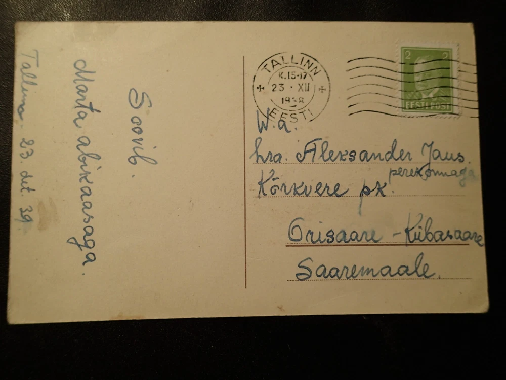 1939 GNOMES DANCING NEAR CHRISTMAS TREE VINTAGE POSTCARD ESTONIA ESTONIAN
