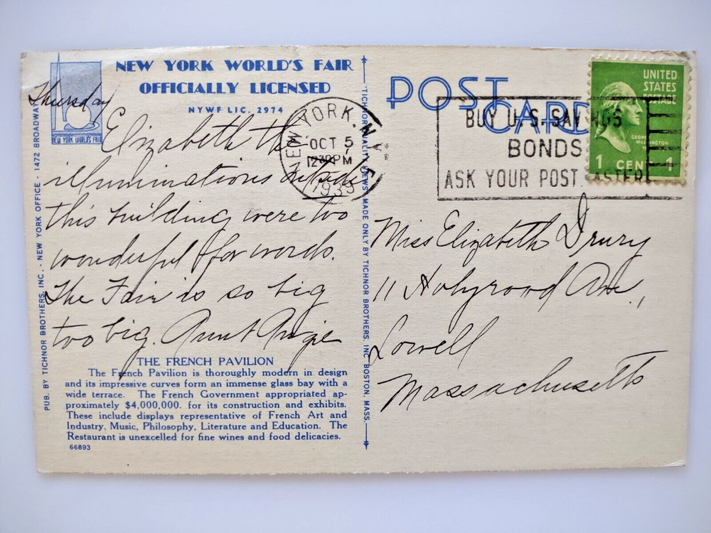 1. This vintage 1939 Worlds Fair postcard is a stunning piece of history! The French Pavilion design pops with retro charm, and the original linen texture adds authenticity. Light corner creases and wear give it character—perfect for collectors. Love that it has the original 1939 cancel stamp! Great addition to any postcard or ephemera collection. Check out their store for more unique finds—bundling saves you money!