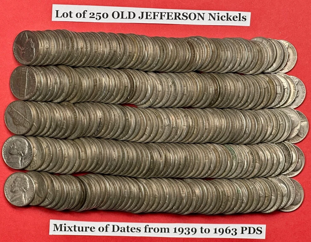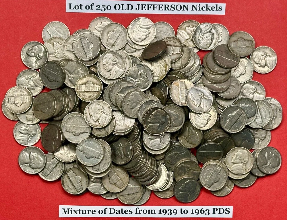 100% Customer Satisfaction Guaranteed! ✯ Buy with CONFIDENCE from a seller with 22+ years on eBay. ✯ ----------------------------------------------------------------------------------------------------------------------------------------------------------------------------------------------- Product Description: This listing is for 250 Old Jefferson Nickels with a random mix of dates from 1939-1964. GREAT BIRTHDAY OR CHRISTMAS IDEA! Please feel free to contact us for bulk purchase requests. We have several more that we haven't listed yet. We would be happy to customize a special listing for you. Please message us via eBay messages. About Us: Our small eBay business was built slowly over the past 22+ years. We have completed thousands of successful eBay transactions over the years and have many returning customers. Please visit our eBay store. We have several items for sale. Kindest regards, Stan & Penny