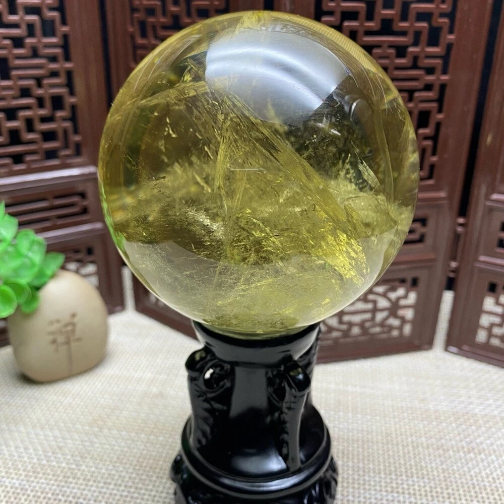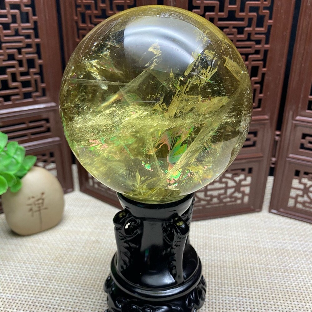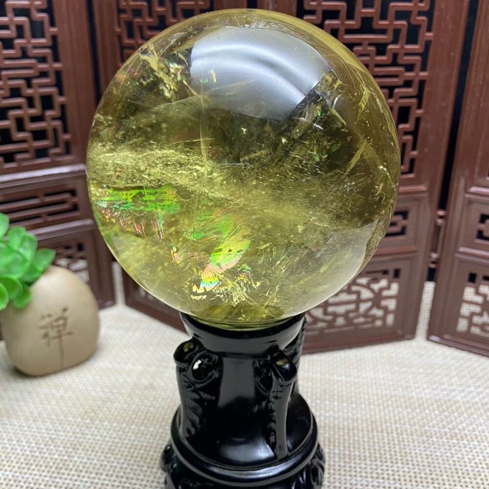 1.93LB Natural Citrine Quartz Sphere Rainbow Crystal Ball for Reiki Healing 87mm