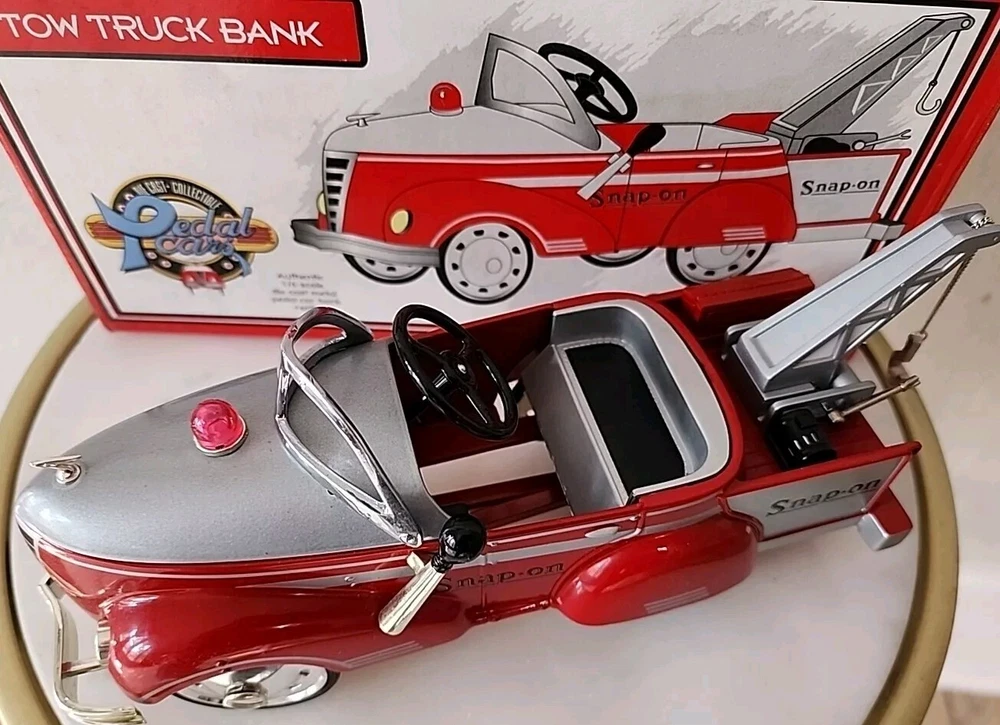 Little to no shelf wear on box. Will combine shipping. AI Description: This is a rare and exclusive 1940 Gendron Tow Truck Pedal Car Bank in 1/6 scale, made by SNAP ON. The diecast model, with a red color and model number 711622002142, is a perfect addition to any car enthusiast's collection. The vehicle make is GENDRON and it is a car model suitable for display or play. The model was manufactured in 1999 and belongs to the Cars character family. This item is a must-have for collectors and enthusiasts alike!