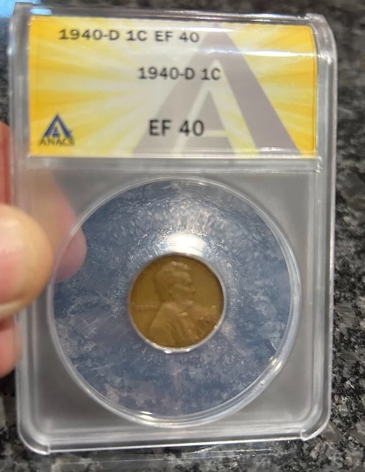 Certified 1940 Wheat Penny, EF 40 In case as shown