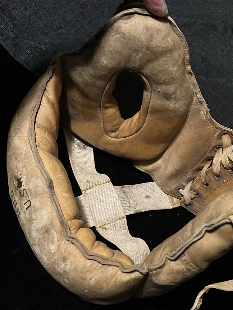 1940's Rawlings NHG United States Navy Leather Boxing Protective Gear Headgear. Complete. All buckles, elastic, and laces work. Head not included. Buyer pays zip code calculated shipping: USPS Ground Advantage 2 - 5 business days 2 to 5 business days Max. 70 pounds Tracking included: Yes Insurance included: Yes Buyer pays: $6.25 - $10.77 Buyer pays eBay discounted rate $6.25 - $10.77 $9.35 - $16.20 Was Retail rate $9.35 - $16.20 Save when you buy a label on eBay