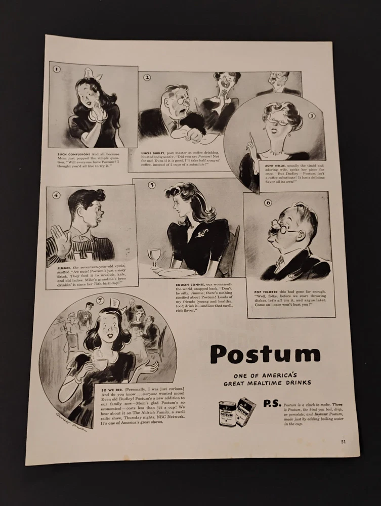 1940s Vintage Print Ad Potsum Mealtime Drink Comic Strip NBC Show Retro Wall Art