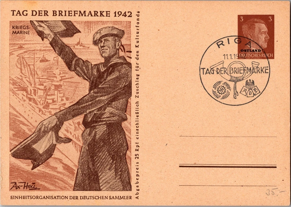 Up for auction is a beautiful postcard cover from Germany. In excellent condition . Priced to sell. Great stamps and cancels. 1942 Riga Germany Stationery Postcard Cover World War II German Kriegsmarine Postmarked January 11, 1945