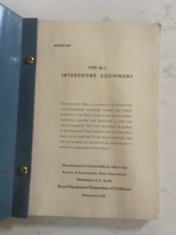 1942 US Navy Instruction Book Aircraft Interphone Equipment RL-5