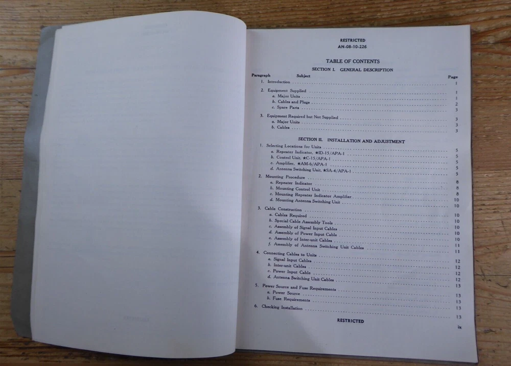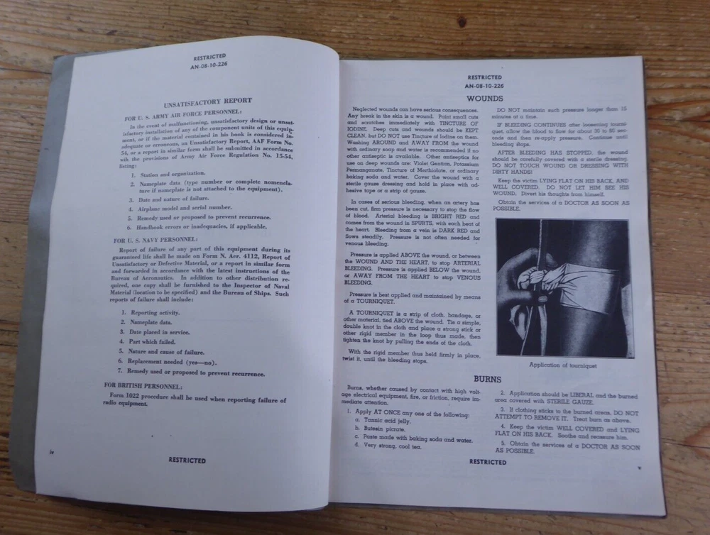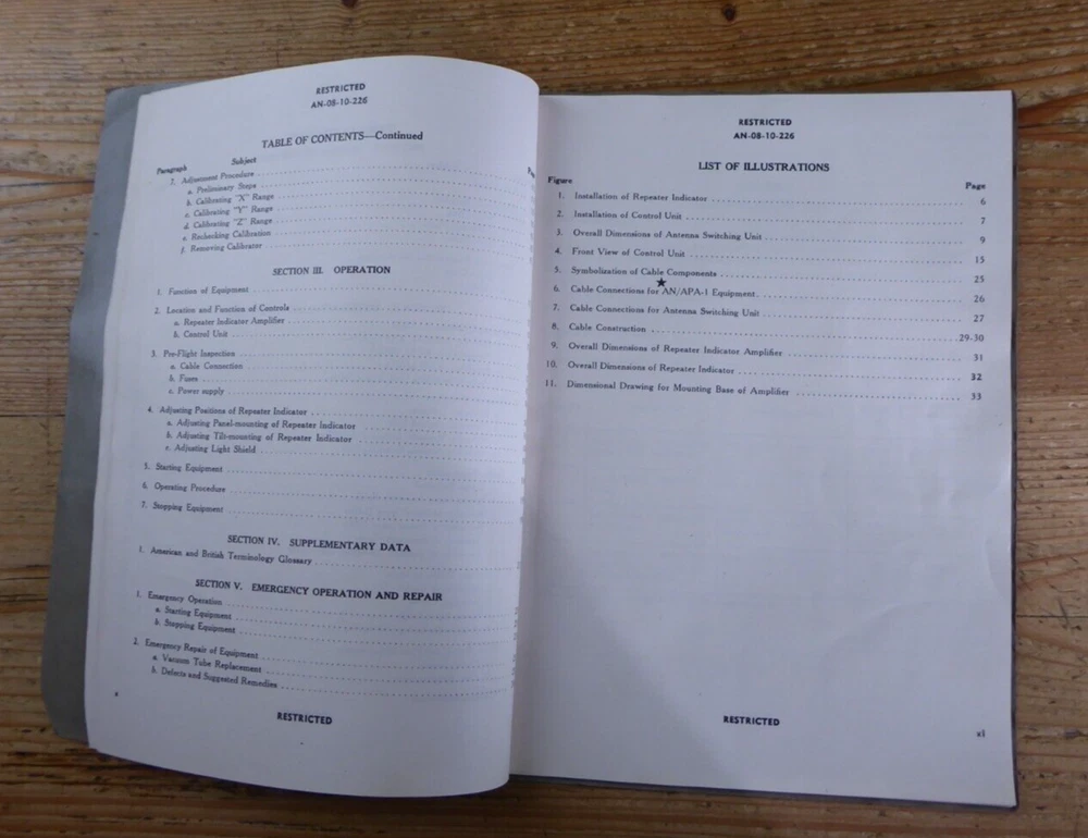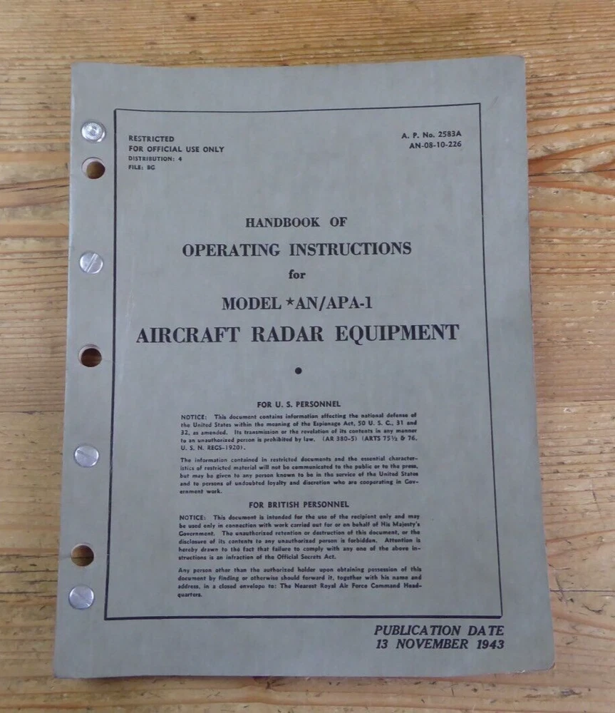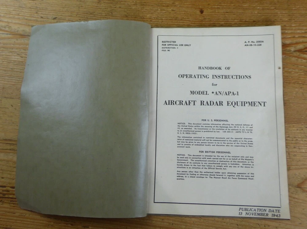 1943 Handbook of Operating Instructions Aircraft Radar Equipment Issued by US and UK 33 pages including pull out charts In very good condition - see photos