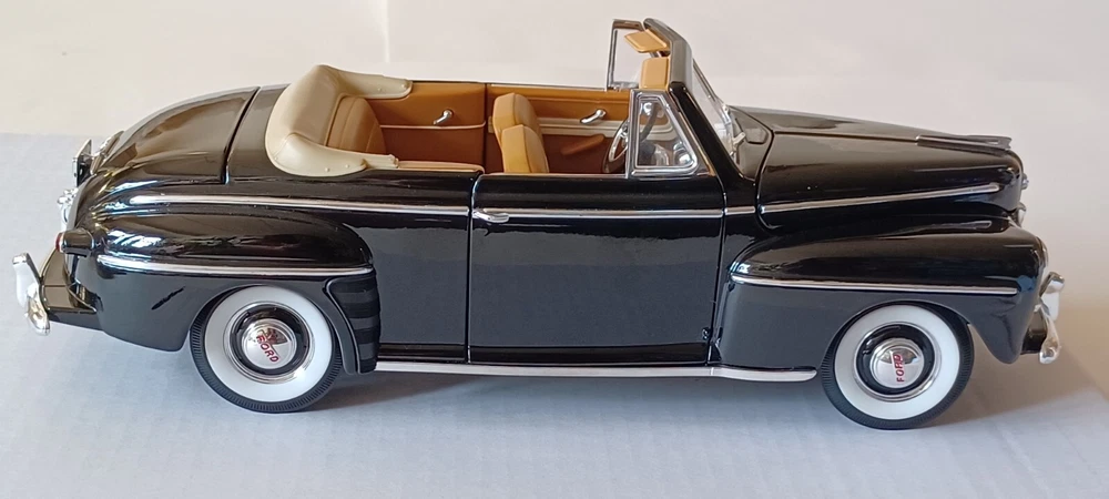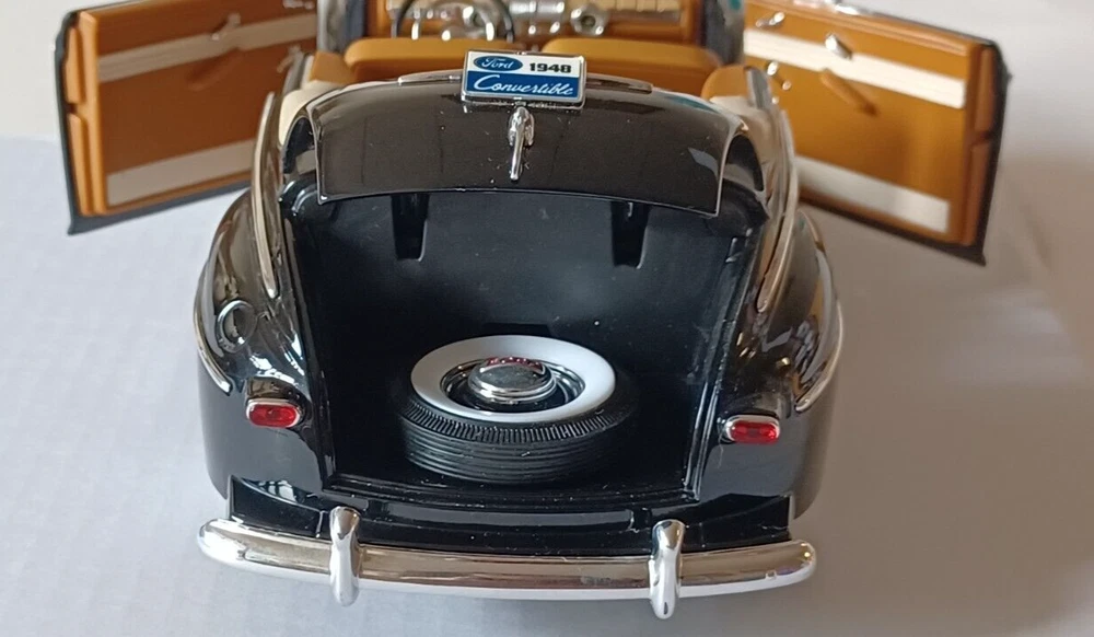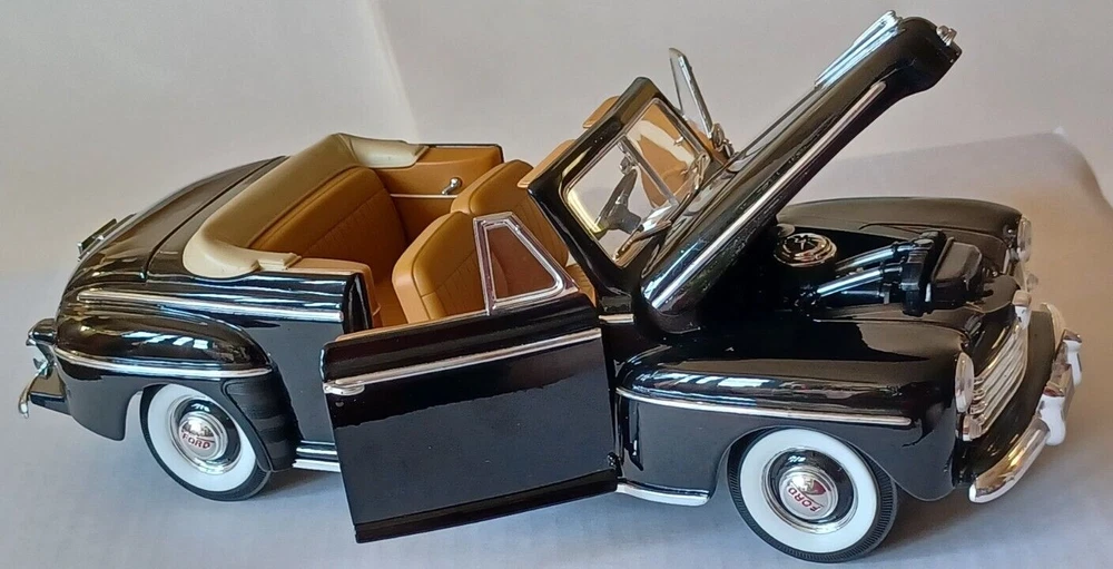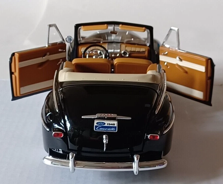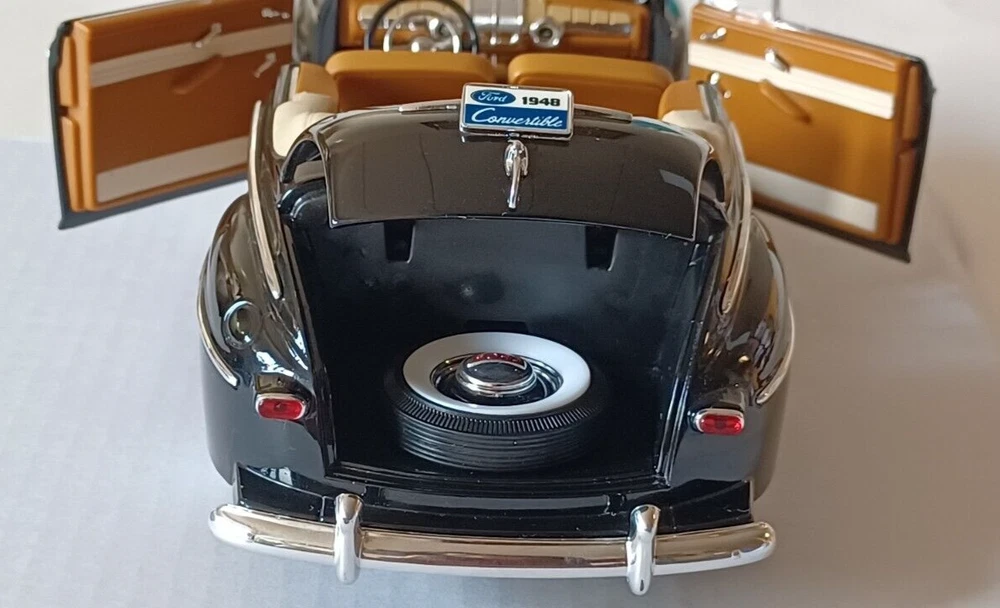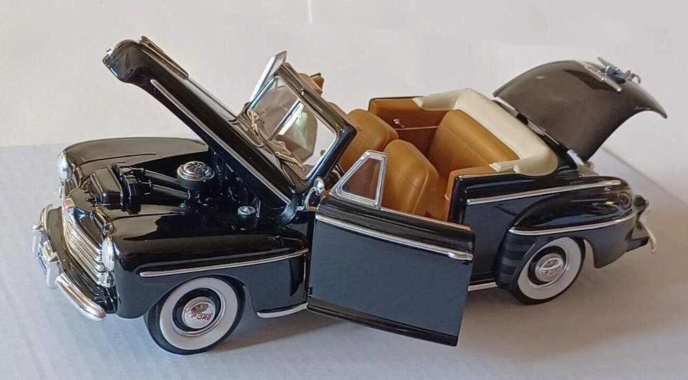 1948 Ford Convertible - Road Signature - Scale 1/18 - Deluxe Edition - Black. Used. It does not come with a box. Die Cast Metal with Plastic Parts. Opening doors Opening Hood Opening trunk Adjustable Front Wheels Workable Steering This car was stored in a cool place. This vehicle is in good condition. No. 92418/9 Sold as is, please see photos to see details. From my pet free & smoke free home! This great piece is from my private collection. Will be shipped in one bu siness day after purchase. In a 16x8x8 Cardboard Paper Box Mailing Packing Shipping Box Corrugated Carton, enviro bubble, and peanut pack biodegradable also.