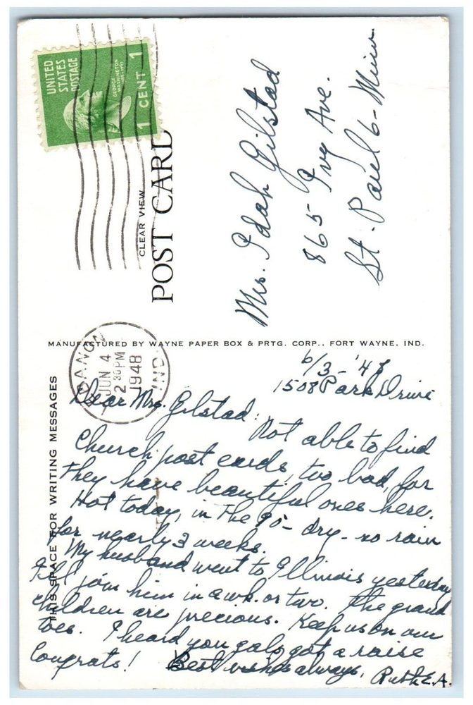 $ 9.261924 Union State Bank Minneapolis Minnesota MN Posted Vintage Postal Card