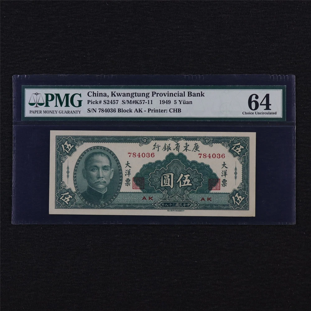 1949 CHINA Kwangtung Provincial Bank 5 Yuan Pick#S2457 PMG 64 Choice UNC Description Note: The outer packing box will be slightly squeezed due to transportation and storage, please understand Shipping Policy 1. Normally your items will be sent out within 2 business days after the payment cleared. 2. We ship package to your eBay registered address only. 3. Items will be shipped from China; Delivery time depends on destination and other factors. The following table is the estimated time according to our experience. 4. We combine shipping for up to 40 items, Except for the initial shipping fee ,add 1 item, shipping cost increases by $1 5. Any items over 40 Items will be considered a new order and will not be combined. For buyers, the delivery time may vary. The following information is for your reference. Destination Shipping Method Estimated Delivery Time Australia, New Zealand FEDEX 5-15 biz days CHINA POST/SpeedPAK 10-30 biz days Asian, United Kingdom, The European Union FEDEX 5-12 biz days CHINA POST/SpeedPAK 10-20 biz days America FEDEX 5-12 biz days south American countries CHINA POST 20-30 biz days 4. If you don't get your package on time, please contact us first, we will help you to resolve it. Payment policy 1. Payment should be made within 7 days after the purchase. If you can't make payment in time, please kindly let us know. 2. Failure to pay will result in a permanent block 3. eBay managed payments Reurn Policy 1.Before any returns or exchanges, please contact our customer service; please inform us the item number, eBay user ID, specific description of damage/problem and clear explanation of your reason. We stand behind every item that we sell and will do our best to assure that you are satisfied. When you are not 100% satisfied, please email us first and we will do our best to make you happy. 2.If you still want to return your purchase, ship the item(s) back to us and we will refund your original purchase price. All returns must include all original items undamaged, in re-saleable condition, all original packaging including manuals, warranty forms, etc. Shipping and handling fees are not refundable. Buyer is responsible for shipping costs incurred shipping products back. After we have received the package and the item is in a resalable condition, a full refund will be issued. Please contact us via eBay messages, and normally we will get back to you within 24-48 hours. Contact us We are here to help. We welcome all your enquiries and comments, please feel free to contact us at anytime. Due to the difference of time zone between China and your location, sometimes the reply to your message will be delayed with 6-10 hours. We respond to messages Monday-Friday during regular business hours, and most messages are replied within 1-2 business days. Please be patient! Thank you! Good luck & Thanks for bidding!