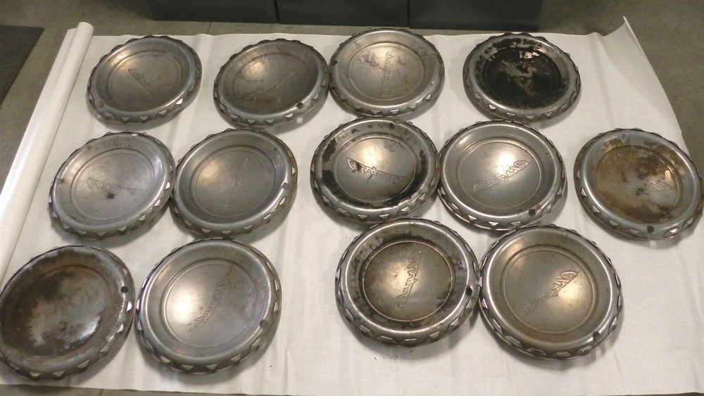 1949 CHRYSLER VINTAGE FACTORY OEM HUBCAP WHEEL COVERS LOT OF 13 USED 1949 CHRYSLER VINTAGE FACTORY OEM HUBCAP WHEEL COVERS LOT OF 13 USED WITH SOME MINOR ROAD DINGS AND WEAR See photos below for details. ABOUT US Jones Vintage Parts has been a family-owned business for over 40 years. We specialize in rare and vintage NOS and used parts for all makes and models from the teens to the 70s. We're passionate about uncovering and restoring the stories of the treasures from your grandparents and great grandparents history. We believe in breathing new life into the world's first modes of transportation. New vintage all the time! SHIPPING INFORMATION Purchased items will generally ship Monday through Friday, within 3 days via USPS Flat Rate or First Class upon payment receipt. Larger items will be shipped via FedEx Ground or UPS. Multiple same-day purchases will be combined for discounted shipping (request a revised invoice to receive bulk shipping discount or notify us of future purchases). International shipping also available. RETURN POLICY Our goal is your satisfaction. If you are unhappy with your order for any reason items may be returned for parts credit within three (3) days of receipt, and you will be charged a 10% restocking fee. There are no shipping refunds. Exchanges will be billed appropriate freight. All return items must be complete, undamaged, unaltered and in resale condition. You may be interested in our other eBay listings . Powered by SixBit's eCommerce Solution
