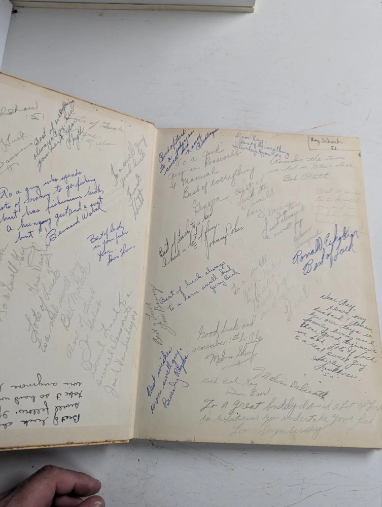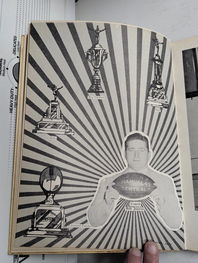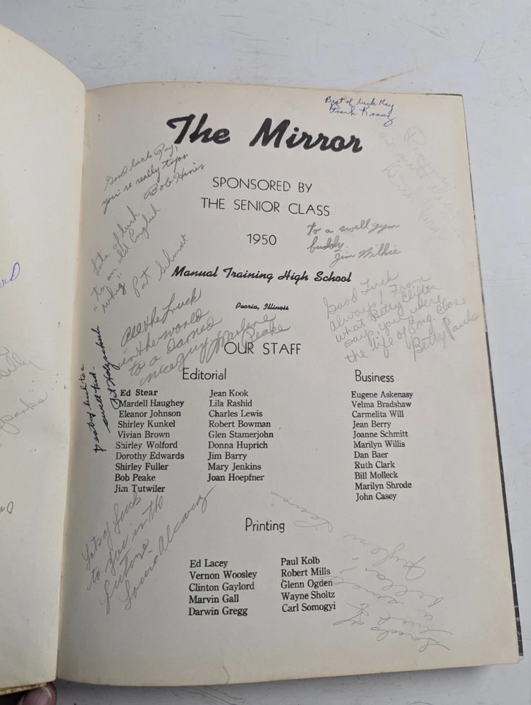 This 1950 Manual Training High School Yearbook is a rare find for collectors of historical memorabilia. The yearbook features a glimpse into the past of Peoria, Illinois, with detailed information about the school's history, teachers, and students. It also includes a signed copy of the yearbook, making it a unique addition to any collection. The yearbook is categorized under Elementary & High Schools, Teaching & Education, and Collectibles, and is perfect for those interested in the history of Peoria's schools. The yearbook is a valuable piece of history, and a must-have for collectors and enthusiasts alike. WILL COMBINE SHIPPING