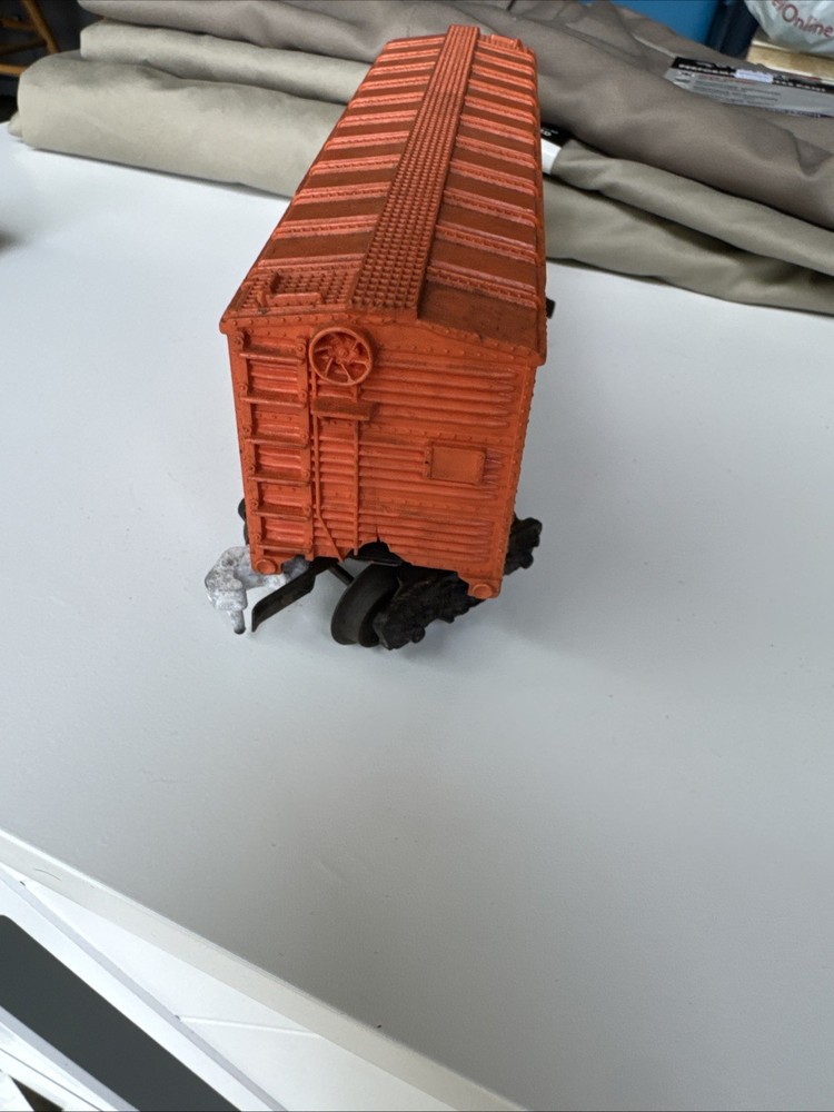 Rail System:Three-Rail SystemYear Manufactured:1950Brand:LionelCountry/Region of Manufacture:United StatesMaterial:Plastic/MetalColor:OrangeSeller Notes:“Used with signs of wear, check photos.”Gauge:OControl System:AnalogScale:1:48Corporate Roadname:Pennsylvania RailroadVintage:YesType:Box Car