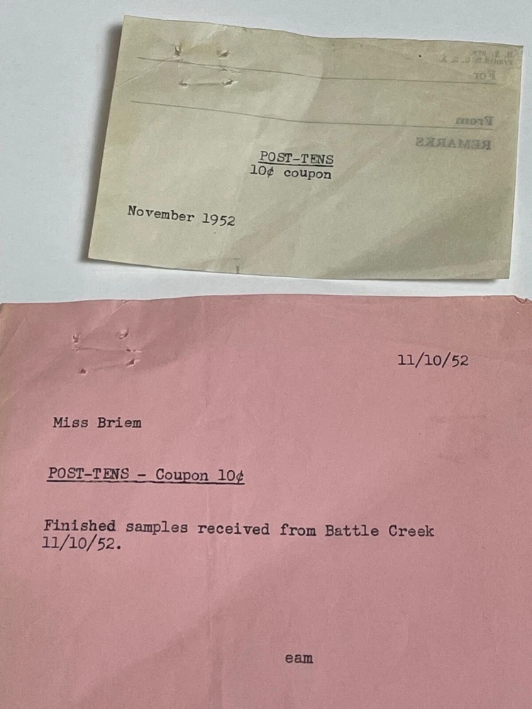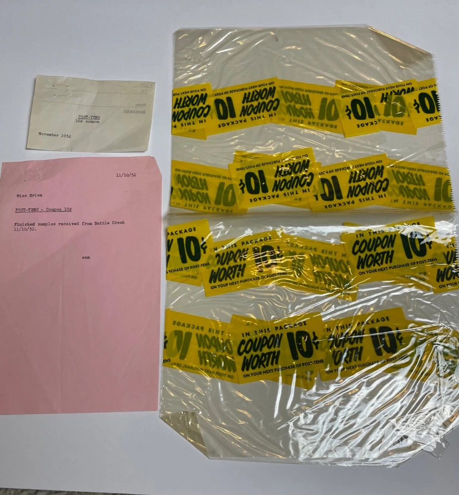 This is a vintage 1950s Post Cereal Box 10c Coupon Clear plastic overwrap printers proof - $4 shipping