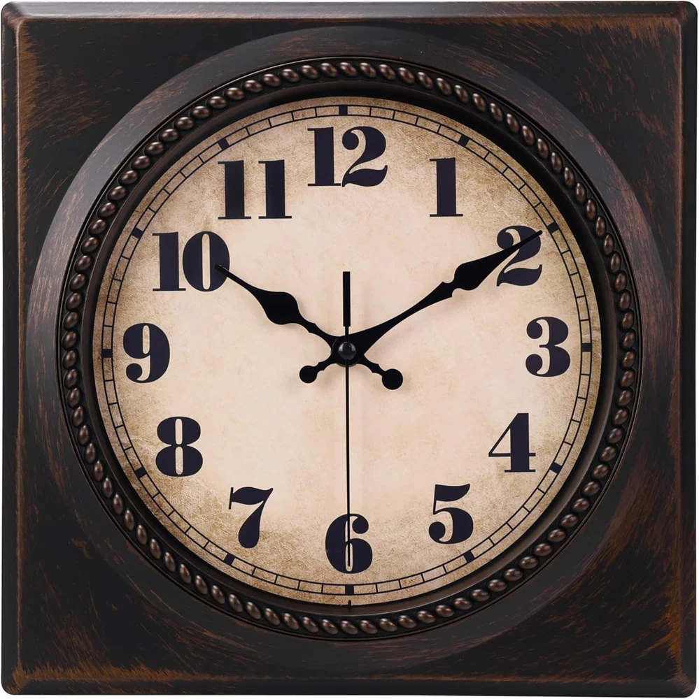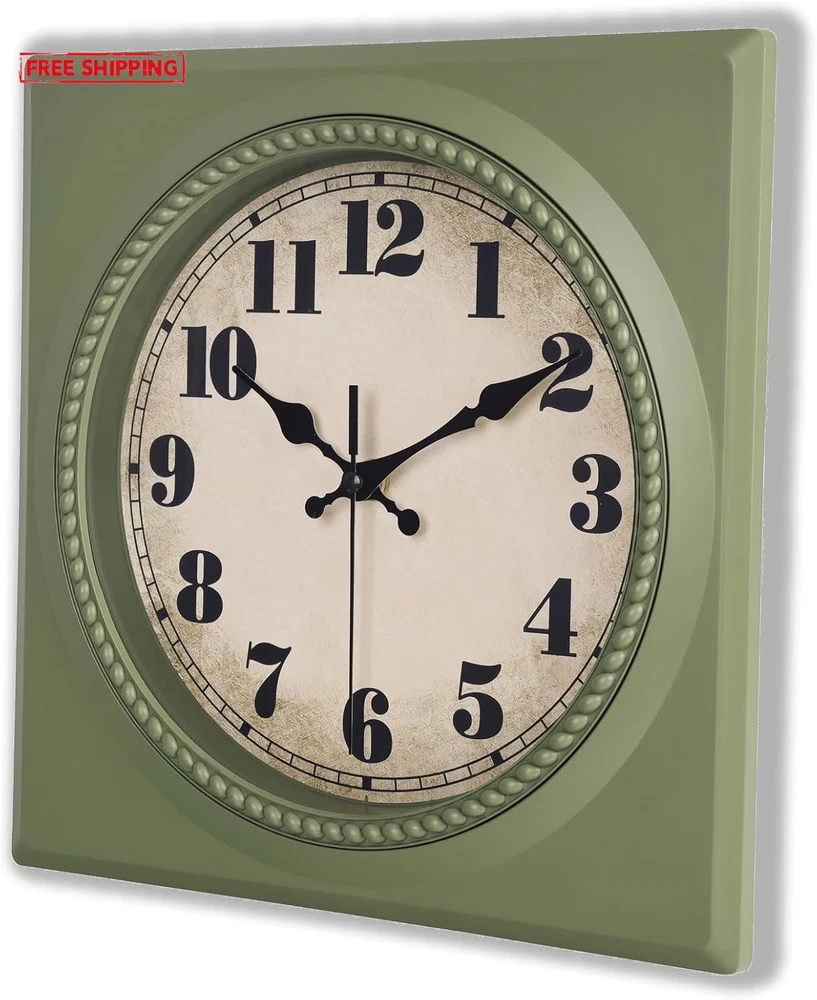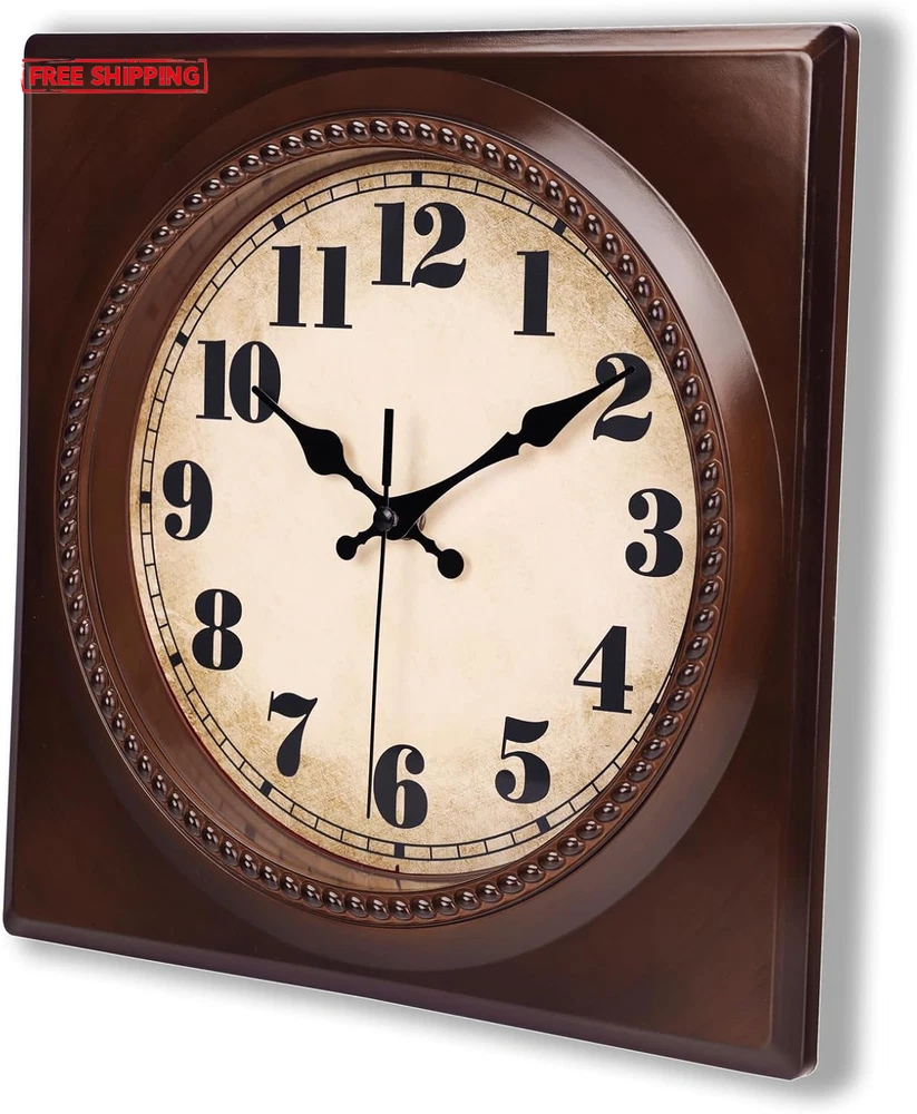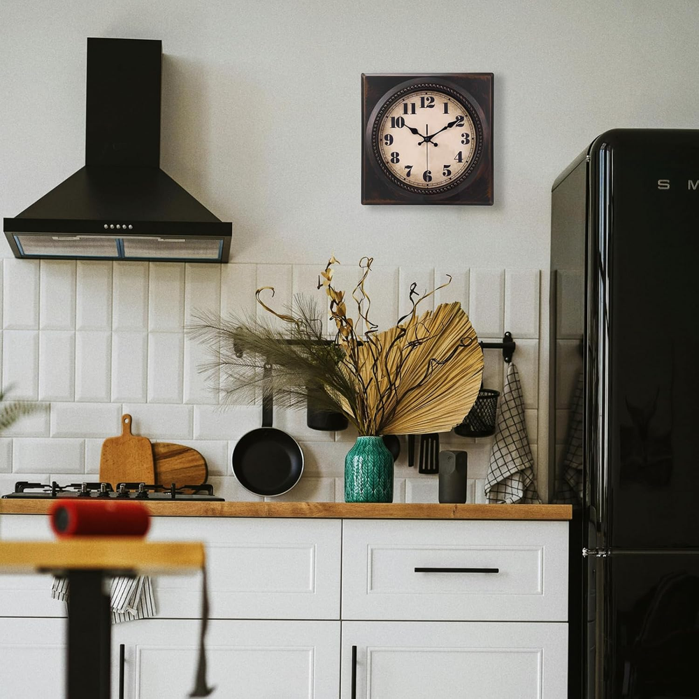 1. This retro square wall clock is a stylish and functional addition to any room! The sleek black-and-gold frame and vintage hands give it a classic mid-century vibe, while the silent quartz movement keeps time accurately without annoying ticks. The bold numbers on the light yellow-brown dial make it super easy to read from across the room. Perfect for kitchens, living rooms, or even above a fireplace—it’s both a great timekeeper and a charming decorative piece. Love the nostalgic 1950s feel!