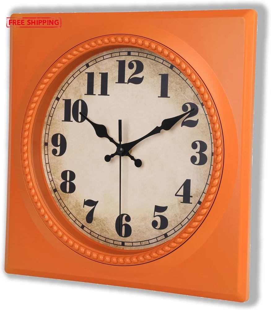 1950s Retro Square Wall Clock 12 Inch Silent Battery Operated Vintage Decor