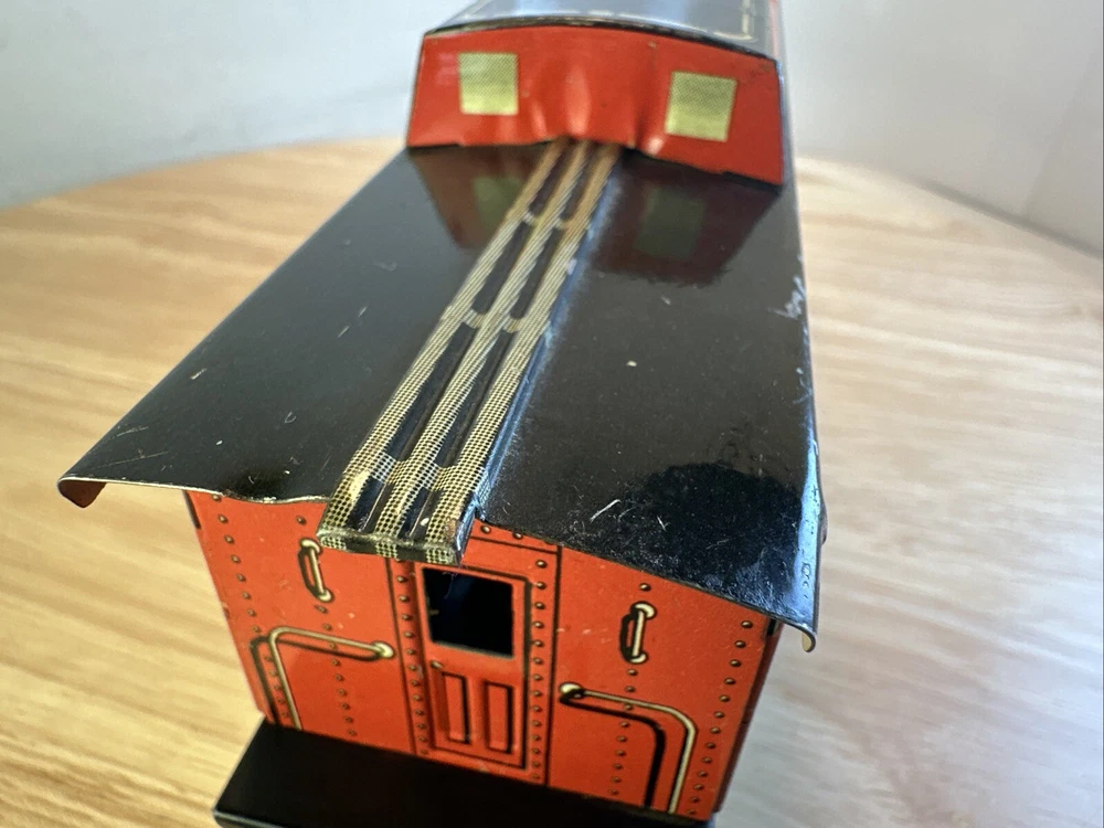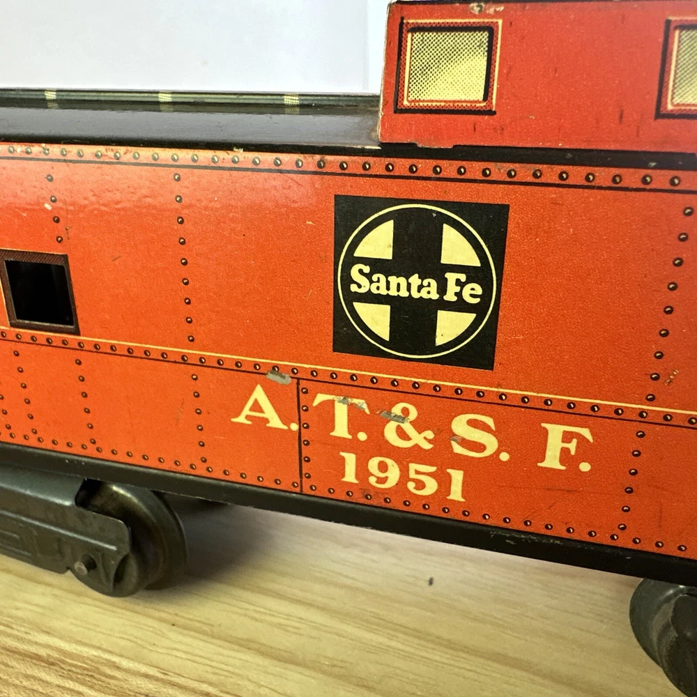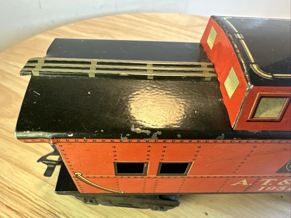 This charming Marx O Gauge ATSF caboose is a fantastic find for vintage train collectors! The detailed lithograph and eight-wheel design add nostalgic appeal, even with a missing coupler—easy to replace or display as-is. Shipped fast and packed with care, it’s perfect for adding a retro touch to any layout or collection.