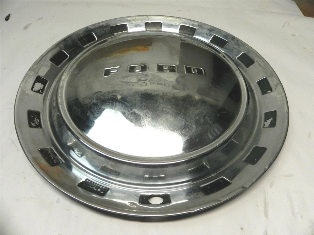 1952 FORD VINTAGE FACTORY ORIGINAL 14"CHROME HUBCAP WHEEL COVERS LOT OF 4 USED 1952 FORD VINTAGE FACTORY ORIGINAL CHROME 14" HUBCAP WHEEL COVERS LOT OF 4 USED WITH SOME ROAD WEAR AND DINGS See photos below for details. ABOUT US Jones Vintage Parts has been a family-owned business for over 40 years. We specialize in rare and vintage NOS and used parts for all makes and models from the teens to the 70s. We're passionate about uncovering and restoring the stories of the treasures from your grandparents and great grandparents history. We believe in breathing new life into the world's first modes of transportation. New vintage all the time! SHIPPING INFORMATION Purchased items will generally ship Monday through Friday, within 3 days via USPS Flat Rate or First Class upon payment receipt. Larger items will be shipped via FedEx Ground or UPS. Multiple same-day purchases will be combined for discounted shipping (request a revised invoice to receive bulk shipping discount or notify us of future purchases). International shipping also available. RETURN POLICY Our goal is your satisfaction. If you are unhappy with your order for any reason items may be returned for parts credit within three (3) days of receipt, and you will be charged a 10% restocking fee. There are no shipping refunds. Exchanges will be billed appropriate freight. All return items must be complete, undamaged, unaltered and in resale condition. You may be interested in our other eBay listings . Powered by SixBit's eCommerce Solution