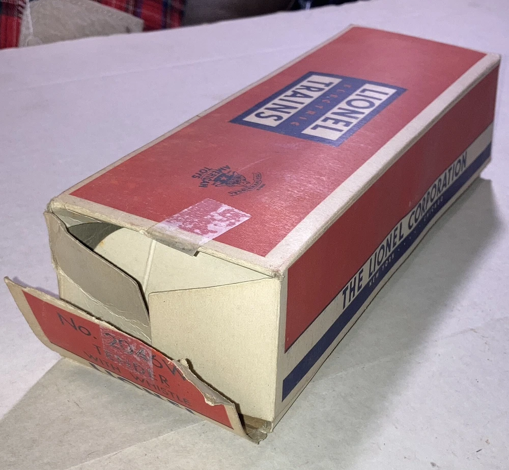 1953 Lionel Tender Car w/Whistle in its original box. Let me start by saying I’m definitely not an expert on vintage trains! I’m selling this boxed train car (as well as several others) for a friend and I know very little about it. I’ll mention if I see anything obvious, but I have no way to test this so it’s being sold as-is. That said, my friend told me the entire set was used as recently as this past Christmas, so I would guess it all still functions as it’s supposed to. This car is in good shape w/minor age/play wear but no damage issues I can find. Box has all flaps (one end flap damaged, see pics) and has minor overall storage wear but still very solid and displayable. I think that should cover everything, but please feel free to email questions you may have. Finally, because this is a consignment and I don’t know any history on it, it’s being sold AS-IS with NO RETURNS. See pics for more details. Buyer pays shipping. Payment due within 2 days of auction end. All items ship within 3 business days. Thanks for looking!