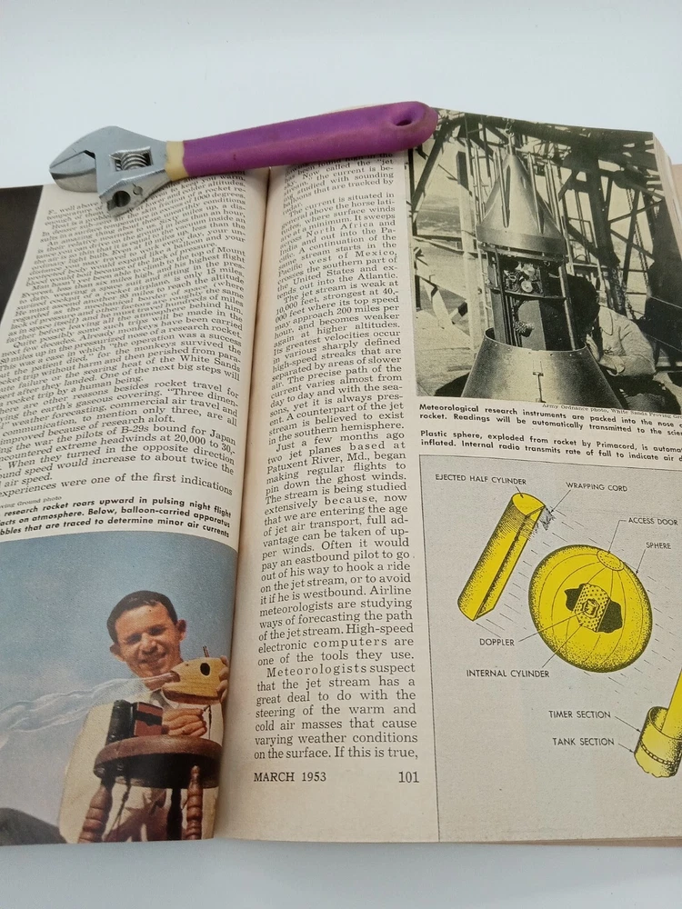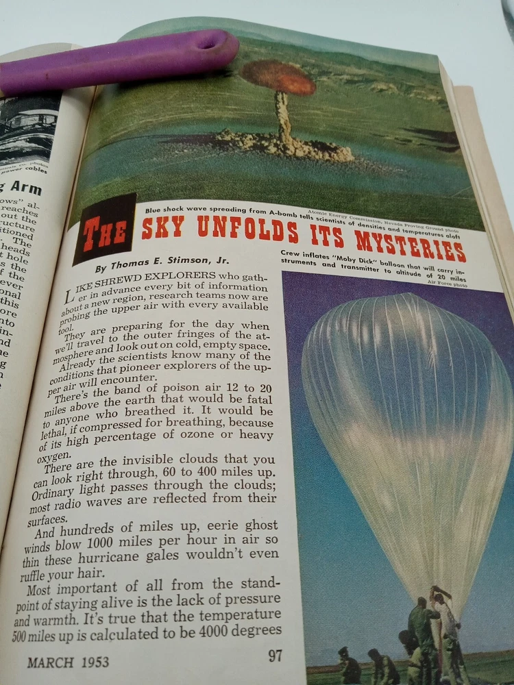 Language:EnglishPublication Name:Popular MechanicsTopic:rocketsSeller Notes:“Preowned used in very nice condition”Publication Year:1953Publication Month:MarchGenre:Science, Technology