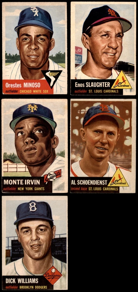 This set contains the following cards 1953 Topps #1 Jackie Robinson PSA 7 - NM Front Back 1953 Topps #2 Luke Easter 4 - VG/EX Front Back 1953 Topps #3 George Crowe 4 - VG/EX Front Back 1953 Topps #4 Ben Wade 6 - EX/MT Front Back 1953 Topps #5 Joe Dobson PSA 5 - EX Front Back 1953 Topps #6 Sam Jones 5 - EX Front Back 1953 Topps #7 Bob Borkowski PSA 6 - EX/MT Front Back 1953 Topps #8 Clem Koshorek 6 - EX/MT Front Back 1953 Topps #9 Joe Collins 5 - EX Front Back 1953 Topps #10 Smoky Burgess 4 - VG/EX Front Back 1953 Topps #11 Sal Yvars 6 - EX/MT Front Back 1953 Topps #12 Howie Judson 4 - VG/EX Front Back 1953 Topps #13 Connie Marrero 4 - VG/EX Front Back 1953 Topps #14 Clem Labine 3 - VG Front Back 1953 Topps #15 Bobo Newsom 6 - EX/MT Front Back 1953 Topps #16 Peanuts Lowrey 4 - VG/EX Front Back 1953 Topps #17 Billy Hitchcock 6 - EX/MT Front Back 1953 Topps #18 Ted Lepcio 4 - VG/EX Front Back 1953 Topps #19 Mel Parnell 3 - VG Front Back 1953 Topps #20 Hank Thompson 5 - EX Front Back 1953 Topps #21 Billy Johnson 4 - VG/EX Front Back 1953 Topps #22 Howard Fox 4 - VG/EX Front Back 1953 Topps #23 Toby Atwell 4 - VG/EX Front Back 1953 Topps #24 Ferris Fain PSA 5 - EX Front Back 1953 Topps #25 Ray Boone PSA 5 - EX Front Back 1953 Topps #26 Dale Mitchell 5 - EX Front Back 1953 Topps #27 Roy Campanella 7 - NM Front Back 1953 Topps #28 Eddie Pellagrini 5 - EX Front Back 1953 Topps #29 Hal Jeffcoat PSA 5.5 - EX+ Front Back 1953 Topps #30 Willard Nixon 4 - VG/EX Front Back 1953 Topps #31 Ewell Blackwell 6 - EX/MT Front Back 1953 Topps #32 Clyde Vollmer PSA 5 - EX Front Back 1953 Topps #33 Bob Kennedy PSA 6 - EX/MT Front Back 1953 Topps #34 George Shuba 5 - EX Front Back 1953 Topps #35 Irv Noren 6 - EX/MT Front Back 1953 Topps #36 Johnny Groth 4 - VG/EX Front Back 1953 Topps #37 Eddie Mathews PSA 6 - EX/MT Front Back 1953 Topps #38 Jim Hearn 4 - VG/EX Front Back 1953 Topps #39 Eddie Miksis 6 - EX/MT Front Back 1953 Topps #40 John Lipon 4 - VG/EX Front Back 1953 Topps #41 Enos Slaughter 5 - EX Front Back 1953 Topps #42 Gus Zernial 4 - VG/EX Front Back 1953 Topps #43 Gil McDougald 4 - VG/EX Front Back 1953 Topps #44 Ellis Kinder 4 - VG/EX Front Back 1953 Topps #45 Grady Hatton 6 - EX/MT Front Back 1953 Topps #46 Johnny Klippstein 5 - EX Front Back 1953 Topps #47 Bubba Church 5 - EX Front Back 1953 Topps #48 Bobby Del Greco 5 - EX Front Back 1953 Topps #49 Faye Throneberry 6 - EX/MT Front Back 1953 Topps #50 Chuck Dressen 6 - EX/MT Front Back 1953 Topps #51 Frank Campos PSA 5 - EX Front Back 1953 Topps #52 Ted Gray PSA 6 - EX/MT Front Back 1953 Topps #53 Sherm Lollar 4 - VG/EX Front Back 1953 Topps #54 Bob Feller 5 - EX Front Back 1953 Topps #55 Mickey McDermott 5 - EX Front Back 1953 Topps #56 Gerry Staley 4 - VG/EX Front Back 1953 Topps #57 Carl Scheib 5 - EX Front Back 1953 Topps #58 George Metkovich 4 - VG/EX Front Back 1953 Topps #59 Karl Drews 5 - EX Front Back 1953 Topps #60 Cloyd Boyer 5 - EX Front Back 1953 Topps #61 Early Wynn 3 - VG Front Back 1953 Topps #62 Monte Irvin 3 - VG Front Back 1953 Topps #63 Gus Niarhos 4 - VG/EX Front Back 1953 Topps #64 Dave Philley 6 - EX/MT Front Back 1953 Topps #65 Earl Harrist 5 - EX Front Back 1953 Topps #66 Minnie Minoso 4 - VG/EX Front Back 1953 Topps #67 Roy Sievers 6 - EX/MT Front Back 1953 Topps #68 Del Rice 4 - VG/EX Front Back 1953 Topps #69 Dick Brodowski PSA 6 - EX/MT Front Back 1953 Topps #70 Ed Yuhas 4 - VG/EX Front Back 1953 Topps #71 Tony Bartirome 5 - EX Front Back 1953 Topps #72 Fred Hutchinson 5 - EX Front Back 1953 Topps #73 Eddie Robinson 5 - EX Front Back 1953 Topps #74 Joe Rossi 5 - EX Front Back 1953 Topps #75 Mike Garcia PSA 6 - EX/MT Front Back 1953 Topps #76 Pee Wee Reese PSA 4 - VG/EX Front Back 1953 Topps #77 Johnny Mize 6 - EX/MT Front Back 1953 Topps #78 Al Red Schoendienst 4 - VG/EX Front Back 1953 Topps #79 John Wyrostek 4 - VG/EX Front Back 1953 Topps #80 Jim Hegan 5 - EX Front Back 1953 Topps #81 Joe Black 5 - EX Front Back 1953 Topps #82 Mickey Mantle PSA 5 - EX Front Back 1953 Topps #83 Howie Pollet 5 - EX Front Back 1953 Topps #84 Bob Hooper 5 - EX Front Back 1953 Topps #85 Bob Morgan 5 - EX Front Back 1953 Topps #86 Billy Martin PSA 4 - VG/EX Front Back 1953 Topps #87 Eddie Lopat 4 - VG/EX Front Back 1953 Topps #88 Willie Jones 5 - EX Front Back 1953 Topps #89 Chuck Stobbs 6 - EX/MT Front Back 1953 Topps #90 Hank Edwards 5 - EX Front Back 1953 Topps #91 Ebba St. Claire 5 - EX Front Back 1953 Topps #92 Paul Minner 5 - EX Front Back 1953 Topps #93 Hal Rice 3 - VG Front Back 1953 Topps #94 Bill Kennedy 5 - EX Front Back 1953 Topps #95 Willard Marshall 6 - EX/MT Front Back 1953 Topps #96 Virgil Trucks 5 - EX Front Back 1953 Topps #97 Don Kolloway 6 - EX/MT Front Back 1953 Topps #98 Cal Abrams 6 - EX/MT Front Back 1953 Topps #99 Dave Madison 5 - EX Front Back 1953 Topps #100 Bill Miller 5 - EX Front Back 1953 Topps #101 Ted Wilks 4 - VG/EX Front Back 1953 Topps #102 Connie Ryan 5 - EX Front Back 1953 Topps #103 Joe Astroth 5 - EX Front Back 1953 Topps #104 Yogi Berra PSA 5.5 - EX+ Front Back 1953 Topps #105 Joe Nuxhall 6 - EX/MT Front Back 1953 Topps #106 Johnny Antonelli 6 - EX/MT Front Back 1953 Topps #107 Danny O'Connell 4 - VG/EX Front Back 1953 Topps #108 Bob Porterfield 4 - VG/EX Front Back 1953 Topps #109 Al Dark PSA 5 - EX Front Back 1953 Topps #110 Herm Wehmeier 5 - EX Front Back 1953 Topps #111 Hank Sauer 4 - VG/EX Front Back 1953 Topps #112 Ned Garver 5 - EX Front Back 1953 Topps #113 Jerry Priddy PSA 6 - EX/MT Front Back 1953 Topps #114 Phil Rizzuto 4 - VG/EX Front Back 1953 Topps #115 George Spencer PSA 6 - EX/MT Front Back 1953 Topps #116 Frank Smith 4 - VG/EX Front Back 1953 Topps #117 Sid Gordon 5 - EX Front Back 1953 Topps #118 Gus Bell 5 - EX Front Back 1953 Topps #119 Johnny Sain PSA 4 - VG/EX Front Back 1953 Topps #120 Davey Williams 4 - VG/EX Front Back 1953 Topps #121 Walt Dropo 4 - VG/EX Front Back 1953 Topps #122 Elmer Valo PSA 6 - EX/MT Front Back 1953 Topps #123 Tommy Byrne 5 - EX Front Back 1953 Topps #