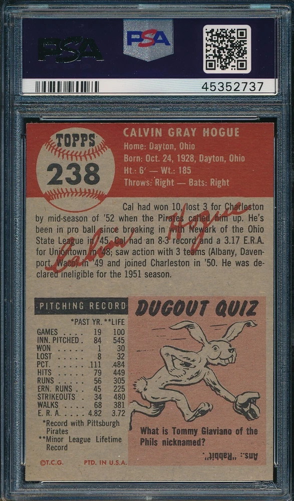 This 1953 Topps trading card is a must-have for any baseball card collector. The card has been graded PSA NM 7, ensuring its authenticity and high quality. Featuring the player's name prominently on the front, this original, assorted team card was manufactured by Topps and is perfect for any fan of the sport. With its iconic design and historical significance, this card is a valuable addition to any collection. Don't miss out on the chance to own this piece of baseball history. We ship fast!