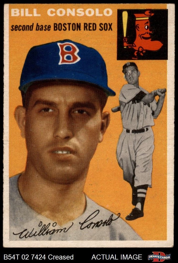 1954 Topps #195 Billy Consolo Red Sox 3.5 - VG+ If the scan in the listing says ACTUAL IMAGE, you will receive the card pictured. For cards issued after 1983, we will often use representative images and you will not receive the exact card pictured. Shipping Policy You only pay shipping on the first item. If you order multiple items on the same order, you will only be charged once for shipping. We do not combine shipping on multiple orders. To avoid multiple shipping charges we recommend using eBay's "Add to Cart" feature to check out multiple items in one transaction, or please request and allow for us to send an invoice to reflect the combined shipping charges. Canadian customers - We send all of our Canadian/International packages with tracking and cannot make any exceptions to this policy. Negotiating Prices All prices are final and we do not negotiate. This policy is to ensure that everyone knows that they are getting our best possible price. So please do not ask us to negotiate on price. Return Policy Dean's Cards has a 100% Money Back Satisfaction Guarantee on all purchases, as long as the product is returned within 30 days of receiving the product. Card Grading Each card is first reviewed by a member of our team, in order to detect any flaws that may not be visible on a scan, such as wrinkles, creases, print spots, or light stains. The vast majority of our vintage cards are professionally graded by the Dean's Cards Grading Software and include a 100% satisfaction guarantee. Our grading is on par with PSA standards when it comes to corners, centering and flaws - and tends to grade a bit tougher than PSA, on cards with a tilted image or rough edges. This grading software was developed to provide far better grading and consistency than can be achieved using the human eye. Determining the card's grade The sharpness of the corners and the degree to which a card was cut off-center determines the maximum possible grade that the card can receive. The card's grade is further reduced by any flaws or blemishes that it may have. Each card is evaluated on the following characteristics and assigned a score. Corners - Each corner of a card is individually analyzed, and then assigned a score on how square, sharp, and flawless it appears. Centering - The borders are measured, at multiple points along the edge, to determine the horizontal and vertical centering and tilt. Defects - The card is examined for imperfections, such as: size, print flaws, dings, stains, creases, or other wear which could lower its grade. Bonus for Perfect Centering - A vintage card, with near perfect centering, is given a one-half grade bonus. So when you buy one of our cards with a half-grade (e.g. 3.5 or 6.5) it will appear perfectly centered, both vertically and horizontally. Grading Criteria Worst Corner - A card can grade only as high as the worst corner will allow. Average Corner Tilt - The difference in width of a card border near the top, compared to the bottom. OCT - The sum of how far a card is Off-Center, plus its Tilt. Minimum Centering Requirements Eye Appeal - The combination of a card's centering, corners and tilt. Well-Centered - Cards that appear perfectly centered receive a bonus of one-half grade. Flaws, defects and other imperfections - can lower a card's grade. Card Backs - the above criteria is also considered, for the back of the cards, but does not inflict as severe of a penalty to its grade. Packaging Once scanned, the cards are placed in "soft" sleeves, which have an open top for easy removal. The Dean's Cards label is placed on the top back of the card sleeve. Every card you buy features a QR Code that you can scan to see your ACTUAL CARD and its grading statistics. Please note that when images are enlarged there may be instances of vertical lines running through the scans. This was caused by a "dust speck" on the scanner and can be verified by the vertical lines running into the black margins on the top and bottom of the image. About Dean and Dean's Cards Dean's Cards Makes Card Collecting - Fast, Easy And Fun. Dean's Cards was founded in 2002 and has become the leading online seller of vintage sports cards and non-sports cards. Our inventory has grown to more than a million vintage cards and we have a staff of 15-20 employees and a 8500 sq. ft. office space in Cincinnati, Ohio.