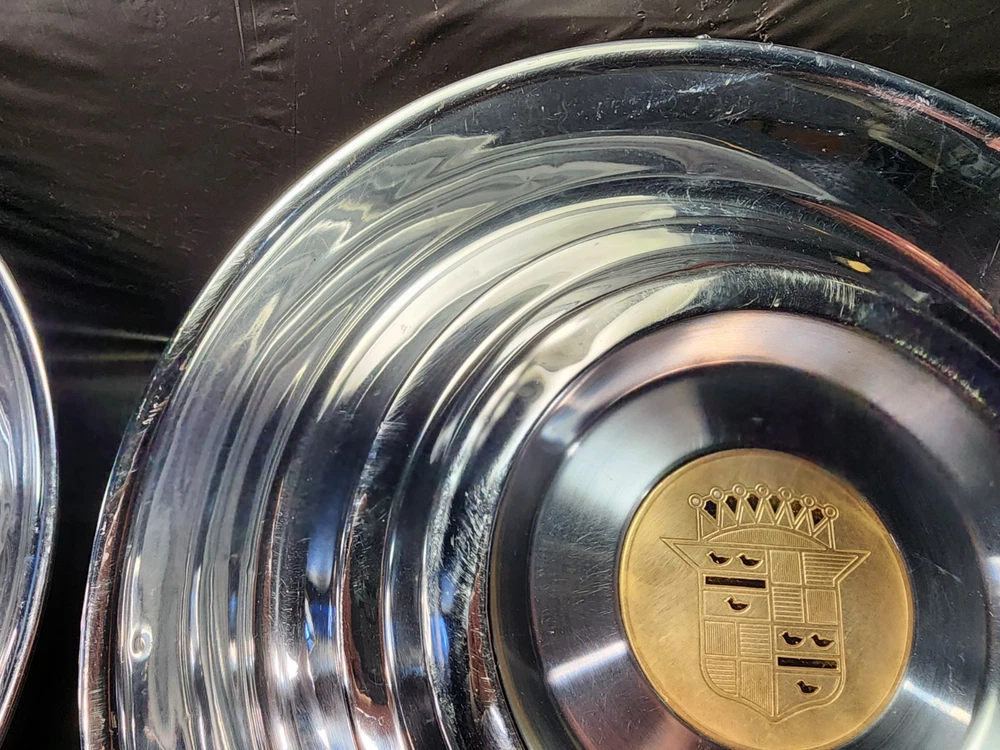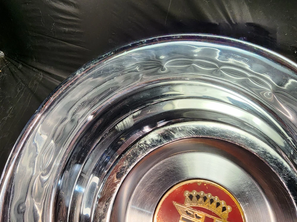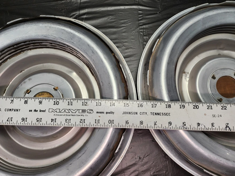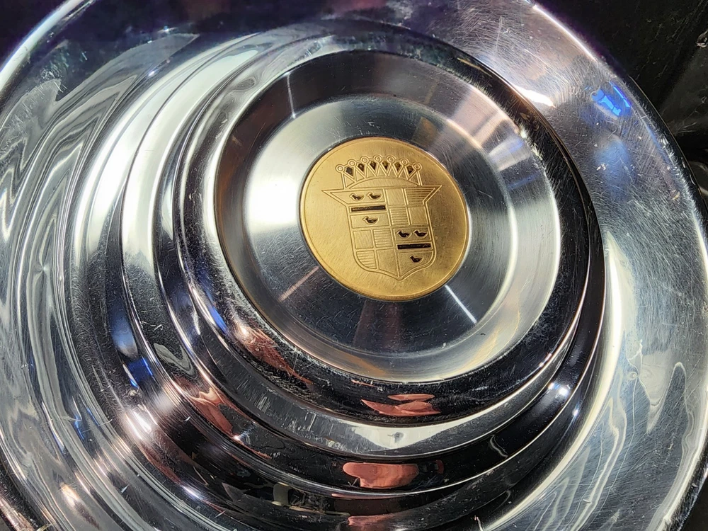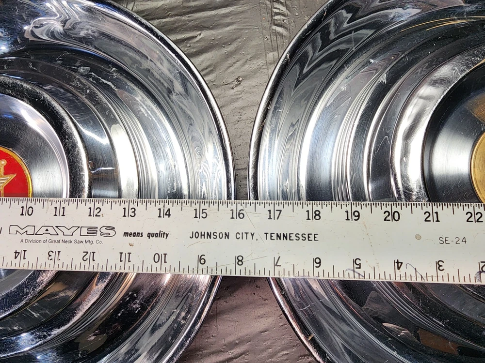 Vintage 40s 50s 60s 70s hub caps. 1954 1955 Cadillac pair of 2 Original OEM Factory OE hubcaps wheel covers center caps. in good condition considering their age and being used. These are Used hubcaps off of old classic cars that were driven on the road and used, so please see photos for complete condition as they are not all perfect. Most have some fading, dings, scuffing, mineral staining, etc could use a good polishing to bring em back to full shine, but otherwise in beautiful condition. Check out more of my ebay page as we are going through and listing a ton of classic / vintage hubcaps from the the 20's 30's 40's 50's 60's 70's 80's 90's 00's and up. all different makes and models such as Ford Chevy Chevrolet GM Cadillac GMC camero nova Chevelle Nomad Bel Air Mercury Corvette Mustang Oldsmobile Pontiac Lincoln Dodge Plymouth Buick Chrysler Mopar Fairlane Volkswagen Cheiftain Challanger Charger 1500 4x4 muscle car hot rod rat rod Cars and Trucks 15in 14in 16in and so much more from full sets to sets of 2 and singles, you name it check us out!