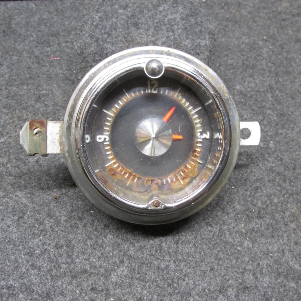 Here is a 55 Pontiac car clock. It was made by Jaeger. I hooked up power to this and it did not run, so it needs to be serviced. Chrome bezel has some tiny pits, good enough for a driver, should be re chromed for show. Plastic lens has a few scratches and black metal ring behind lens has rust. There is some rust residue on back side of plastic lens. Hands have decent color and knob will set the hands. Clock has a Feb 56 date on back, must have been installed in car as an accessory in 56. 56 Pontiac clock looks different than the 55 Pontiac clock. Clock fits a 3 1/8 inch diameter hole. Clock sold as is, no returns. Pictures are part of the description and override my ramblings. Any questions, ask. Know what you are buying.