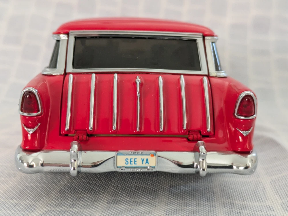 This is from my late father in law's die cast collection. It is a die cast model of a 1955 Chevy Nomad street machine. It is a 1:24 scale model made with the detail and quality that the Danbury Mint is known for. This model has lived in the box since purchase in a smoke free home. Thanks for looking.