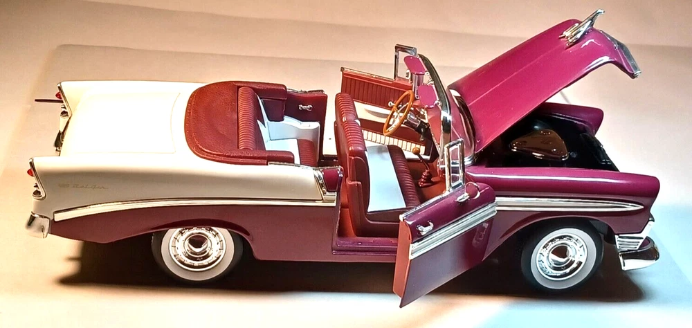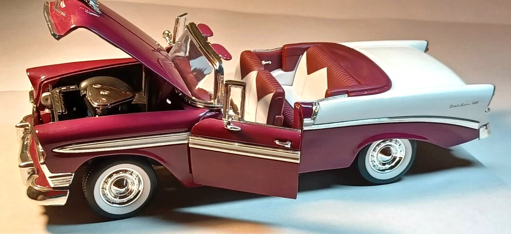 1956 Road Signature - Red Chevrolet Bel Air Convertible Car - Scale 1/18 - Used - Deluxe Edition. It does not come with a box. Die Cast Metal with Plastic Parts. 2 opening doors Opening Hood Adjustable Front Wheels Workable Steering This car was stored in a cool place. This vehicle is in good condition. Used under license. No.92128 / 9 Sold as is, please see photos to see details. From my pet free & smoke free home! This great piece is from my private collection. Will be shipped in one bu siness day after purchase. In a 16x8x8 Cardboard Paper Box Mailing Packing Shipping Box Corrugated Carton, enviro bubble, and peanut pack biodegradable also.